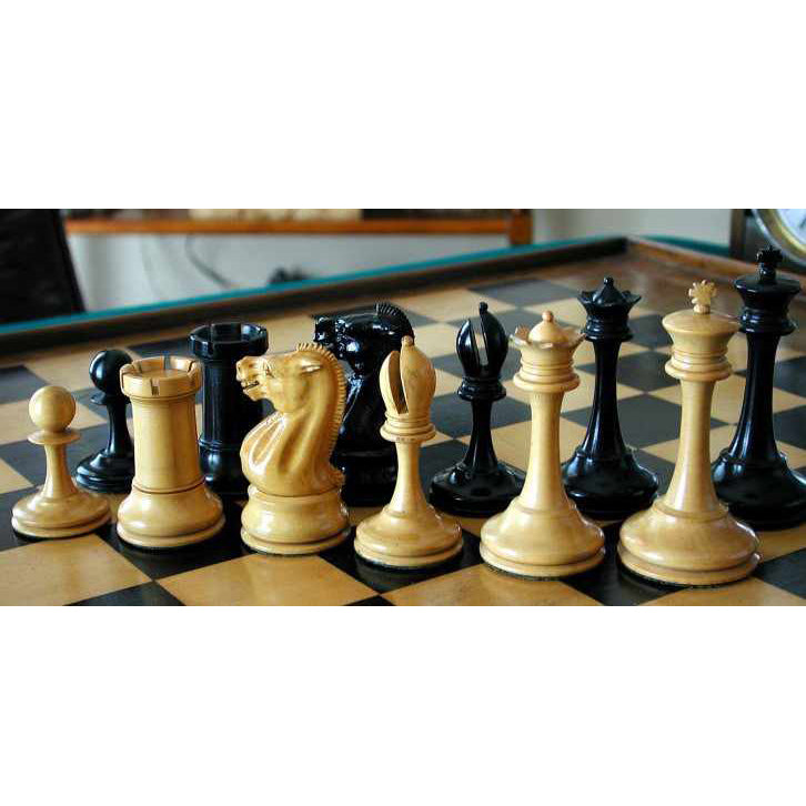 Slightly Imperfect 19th century B & Co reproduced Chess Set- Chess Pieces Only- Genuine Ebony Wood – 4.3″