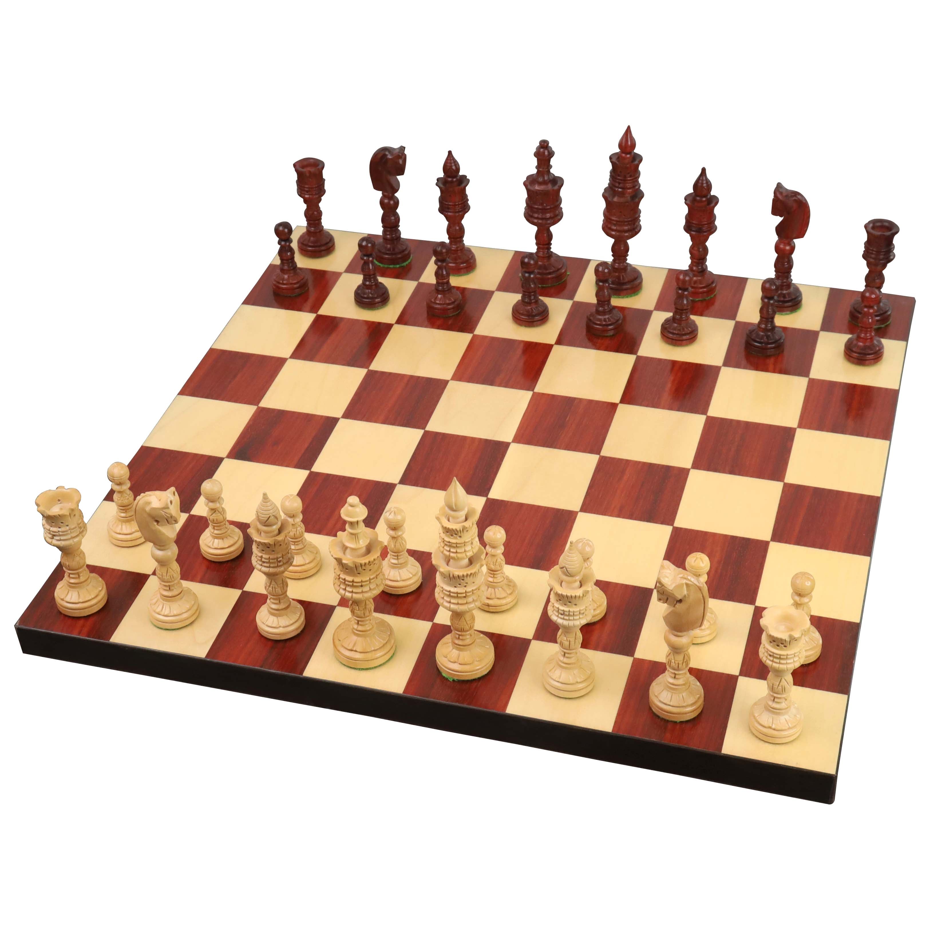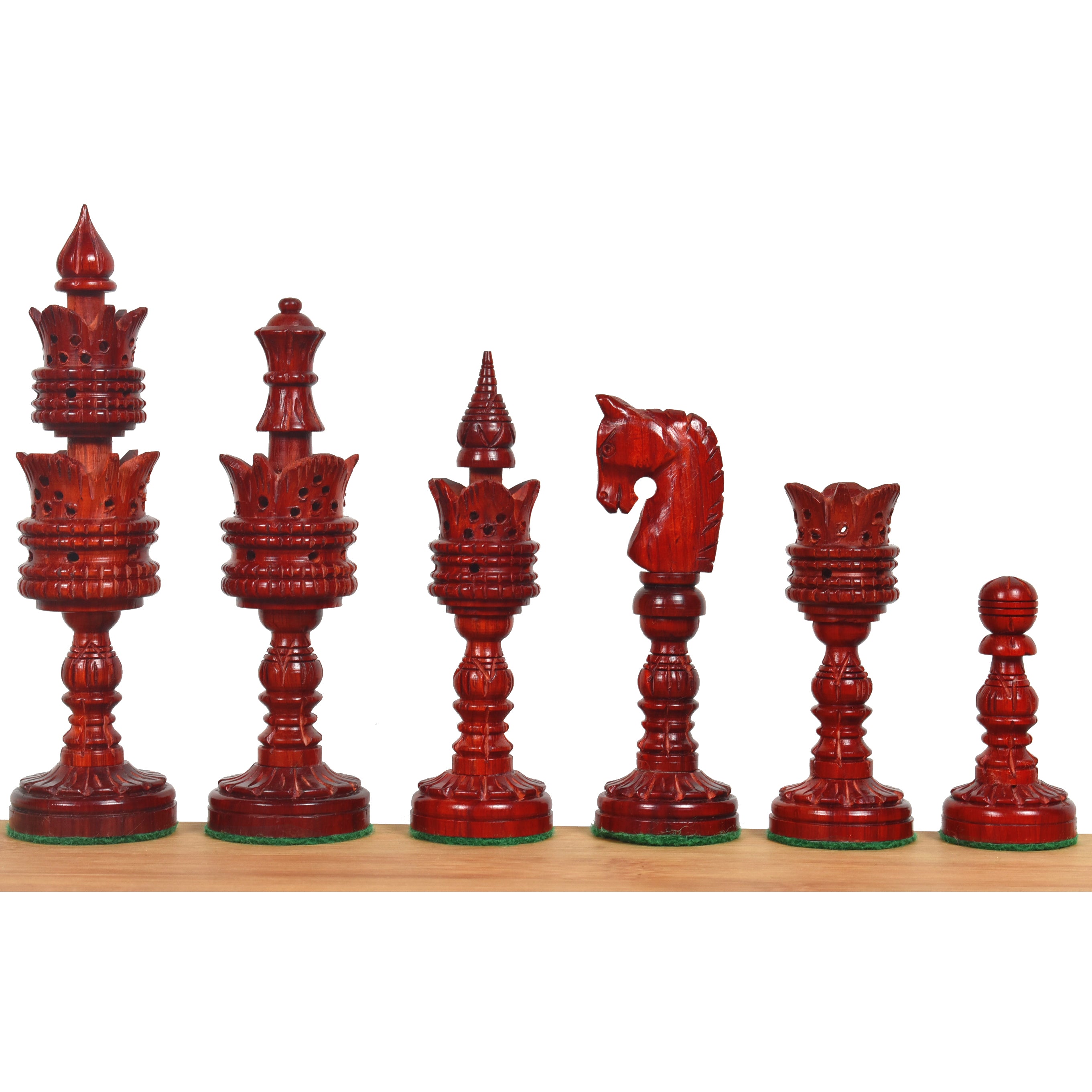 Slightly Imperfect 4.7" Hand Carved Lotus Series Chess Set- Chess Pieces Only in Weighted Bud Rosewood