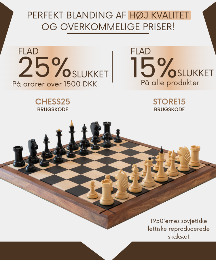 Siden 1849 har skakbrikker i Staunton-stil skabt lighed mellem spillerne, selv efter årtiers udvikling i stilarter og regler. Desuden fremhæver materialerne skakbrikkernes skønhed yderligere. På Royal Chess Mall, Hvert skakspil er håndskåret af mesterhåndværkere med mange års erfaring og ekspertise inden for deres håndværk. Hver brik er nøje udvalgt og skåret til en perfekt afbalanceret og fejlfri brik.