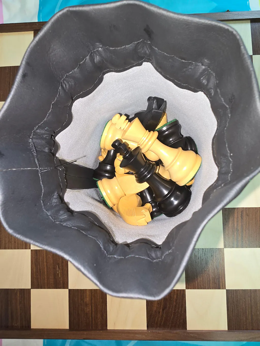 This pouch has a premium look and feel, with a soft leatherette exterior and a smooth inner lining that helps protect the chess pieces. I have also included a photo of the empty pouch to show the interior. The drawstring works well and closes securely without hassle.