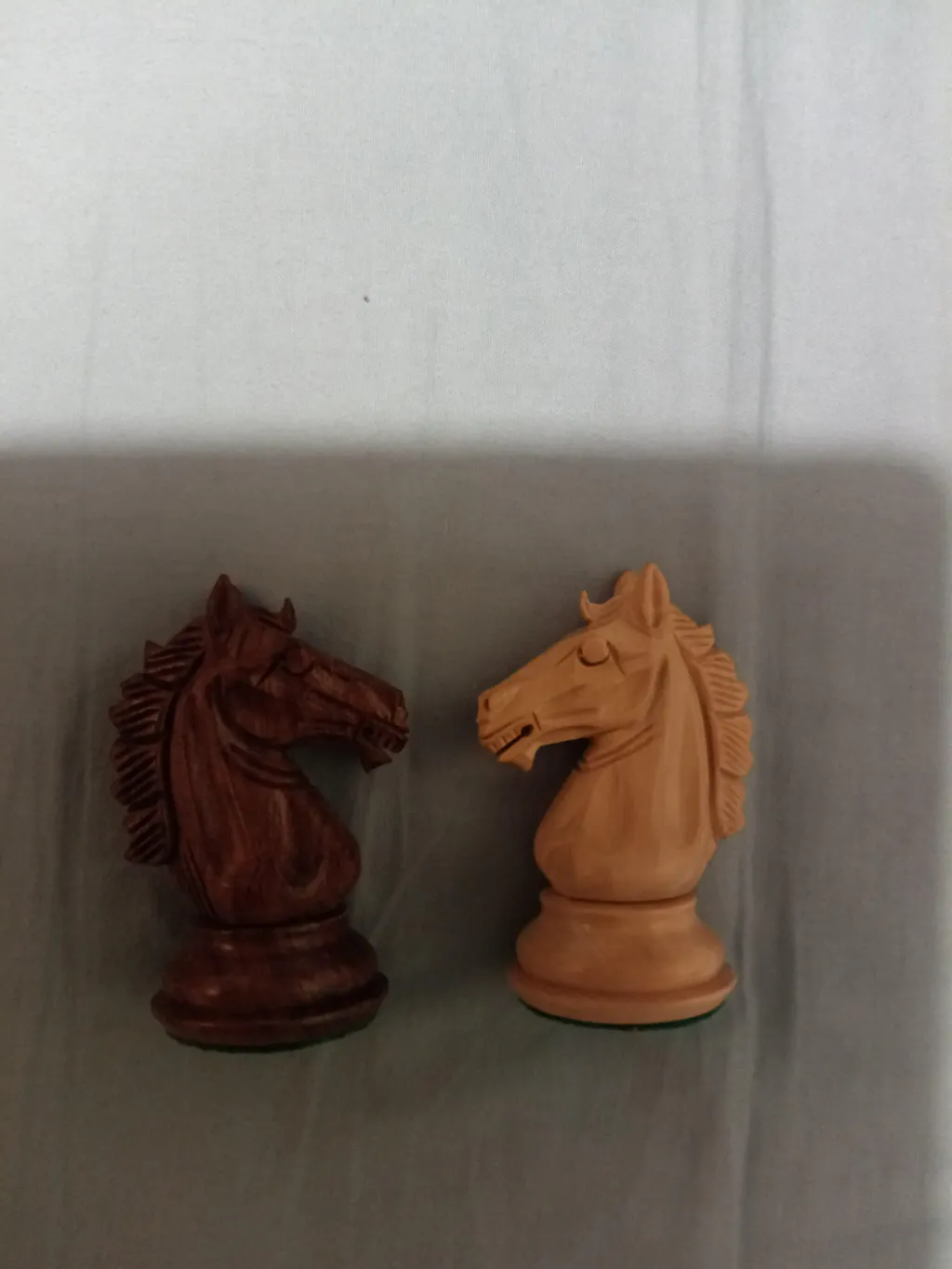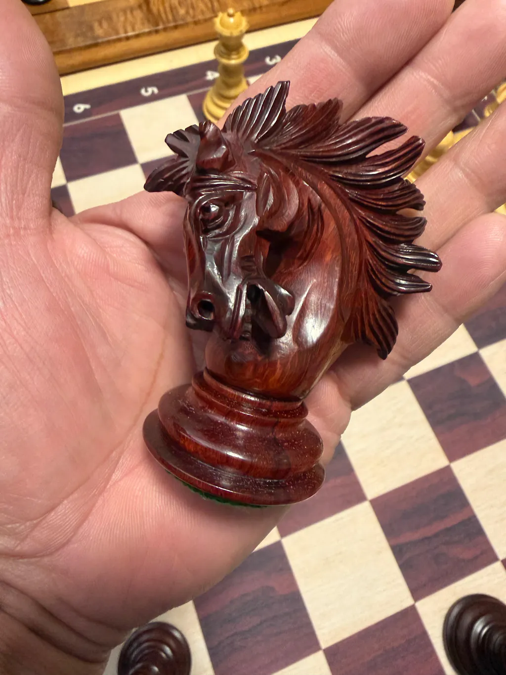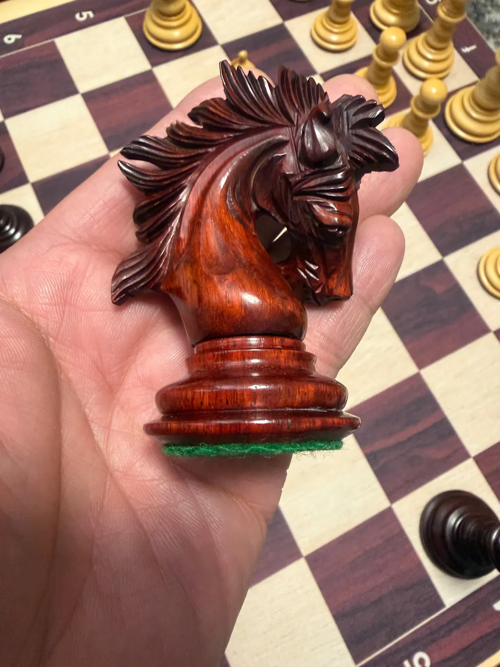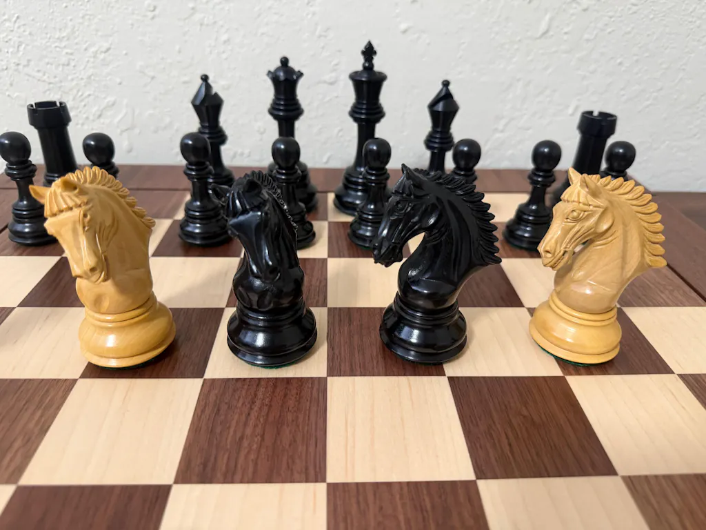 I finally understand why this German knight tournament set is so commonly used. I always see pro players on YouTube using this style, so I specifically looked for it. The customer service from Royal Chess Mall was very helpful, and that is how I found out this is called a German knight set.