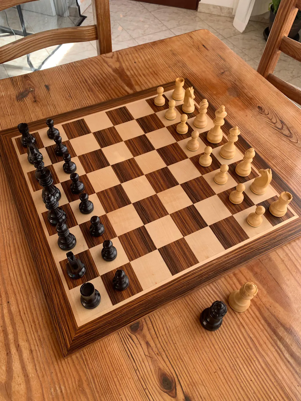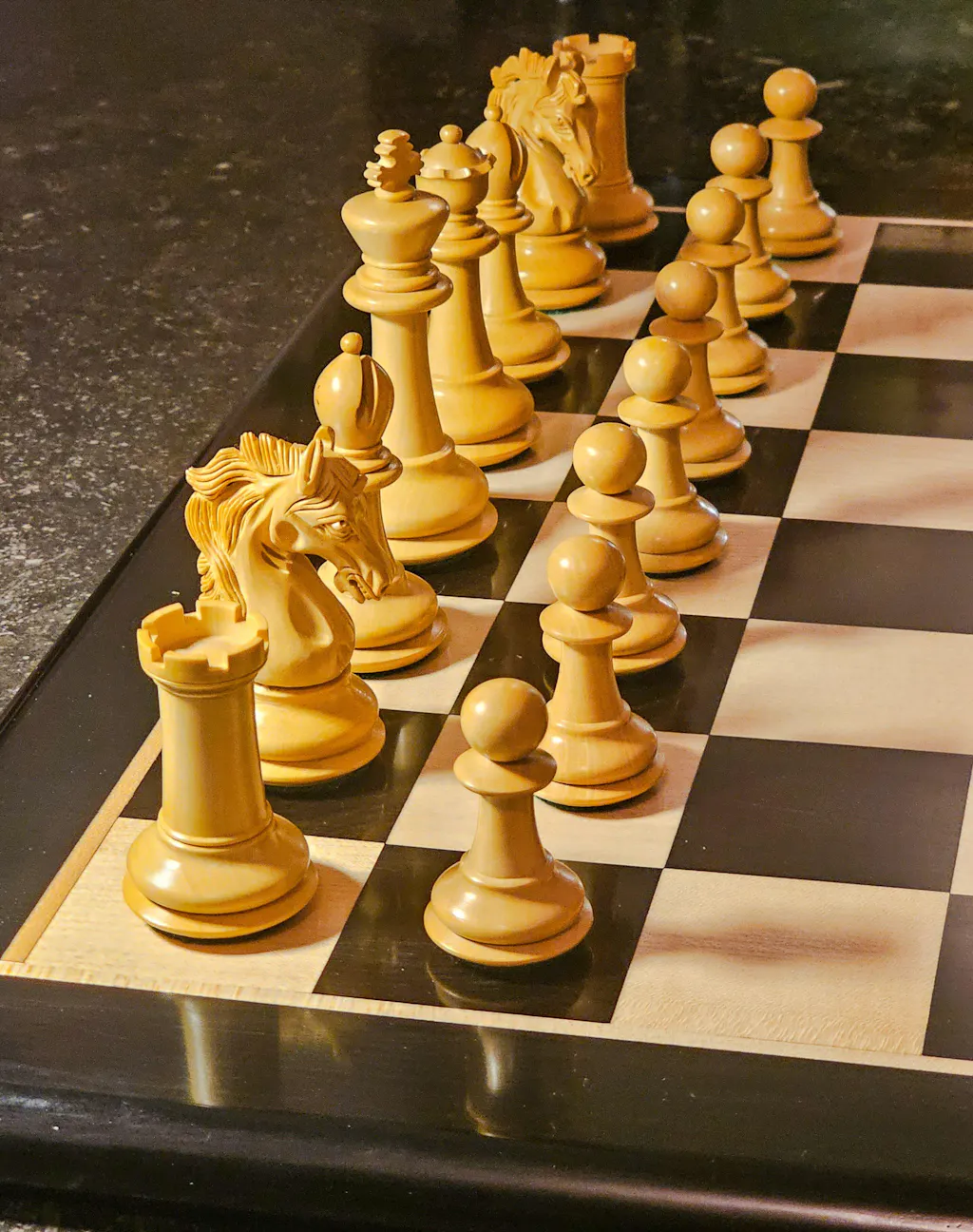 There’s some minor imperfections, like a single pawn with improper staining and very small chips at the top, which hopefully can be replaced, and rook crenelations are not perfectly aligned, but to be honest, it’s a great set regardless.