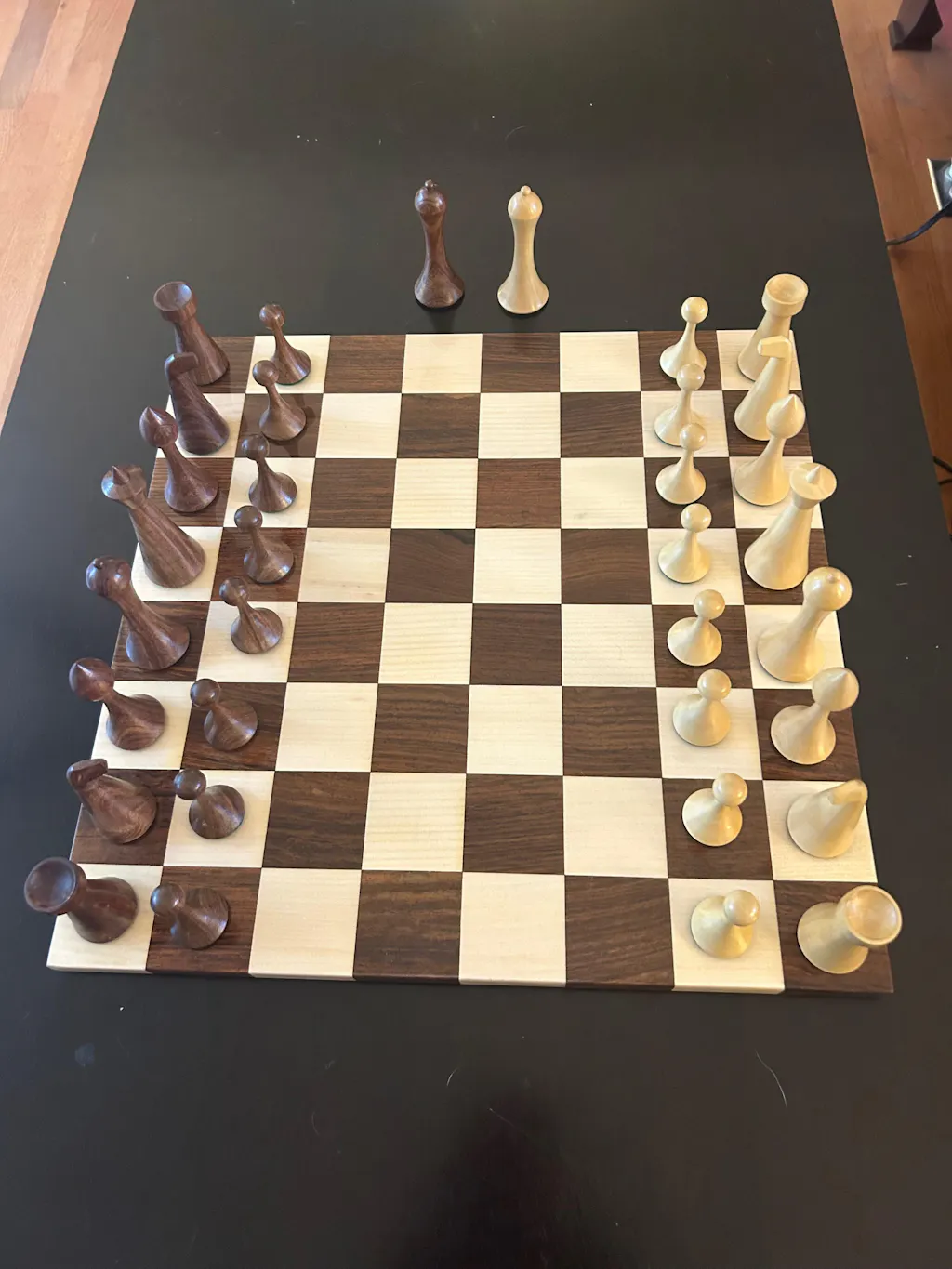 A 2 inch maple and walnut board, honestly it felt a bit cramped. The pieces look slightly crowded and do not have enough breathing room.