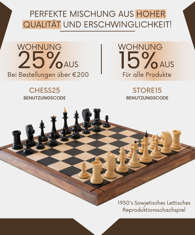Alles begann im Jahr 1849 ... Ja! Das haben wir bereits erwähnt. Dieses 4,5-Zoll-Schachspiel ist eine originalgetreue Nachbildung des klassischen Originals. Die präzise Replik besteht aus Ebenholz und lackierten, antikisierten Buchholzfiguren, die für einen Vintage-Look sorgen. Holen Sie sich dieses Schachspiel, das von Sammlern und Spielern gleichermaßen geliebt wird, und erleben Sie die historische und authentischste Form des Designs, das als erstes die Spielbarkeit perfektioniert hat.