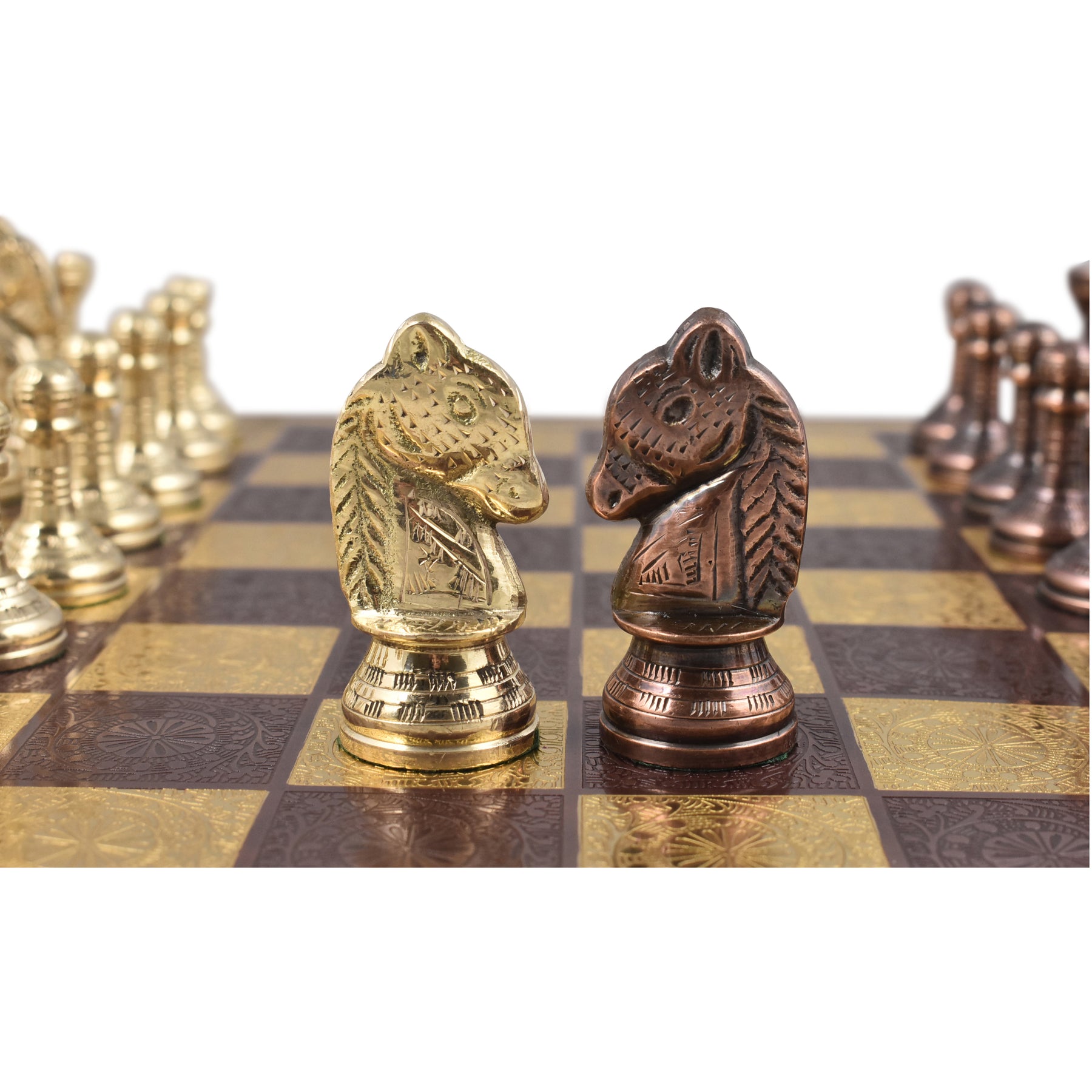 Verbessern Sie Ihr Schach-Erlebnis mit dem luxuriösen Schachspiel aus Messingmetall im Staunton-Stil – 30 cm in Kupfer und Gold. In Anlehnung an klassische Staunton-Designs wird jede Figur von Meisterhandwerkern handgeschnitzt und präsentiert exquisite Kunstwerke in sattem Kupfer und Gold. Mit grünen Filzunterseiten zum Schutz Ihres Bretts eignet sich dieses Set perfekt als Geschenk oder zur Ausstellung und verbindet zeitloses Design mit außergewöhnlicher Handwerkskunst.