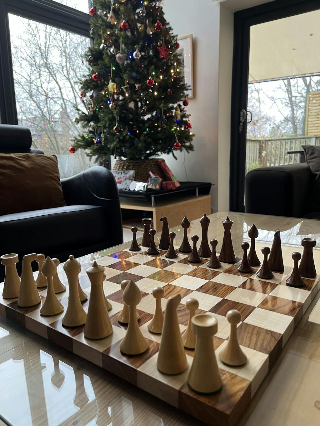 Dark Chess Pieces Golden Rosewood