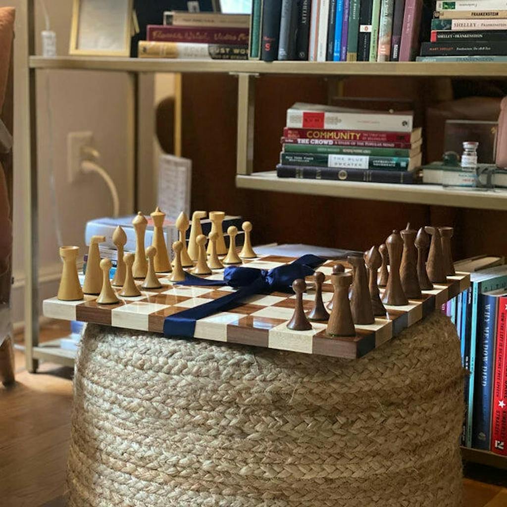 3.6" Herman Ohme Minimalist Combo Chess Set- Chess Piece with Board - Golden Rosewood