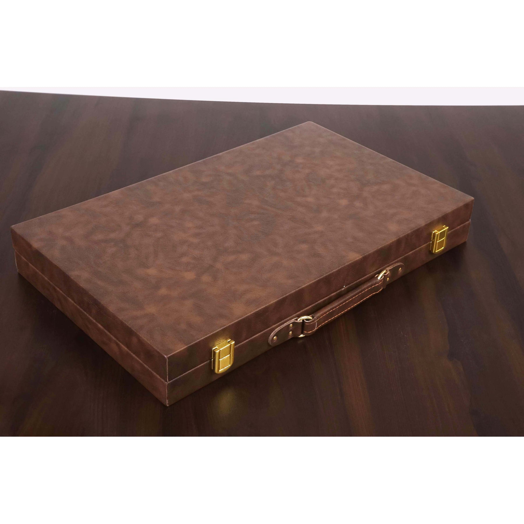 The 18" Textured Chocolate Brown Leatherette Backgammon Set — Luxury Travel Case embodies understated opulence for discerning players. Housed in a textured chocolate brown leatherette exterior, this 18" set pairs contemporary, travel-ready design with a sense of timeless craft. Inside, a thoughtfully selected color palette creates a bold, high-contrast playing arena, featuring a smooth playing surface for swift, precise moves, and coordinated accessories that feel substantial in hand. Built to travel as confidently as it plays, the case includes secure closures, reinforced hinges, and a gift-ready presentation box—perfect for gifting to executives, collectors, or premium game-night enthusiasts. From shelf to social hour to road trip, it delivers refined elegance and dependable performance in equal measure.