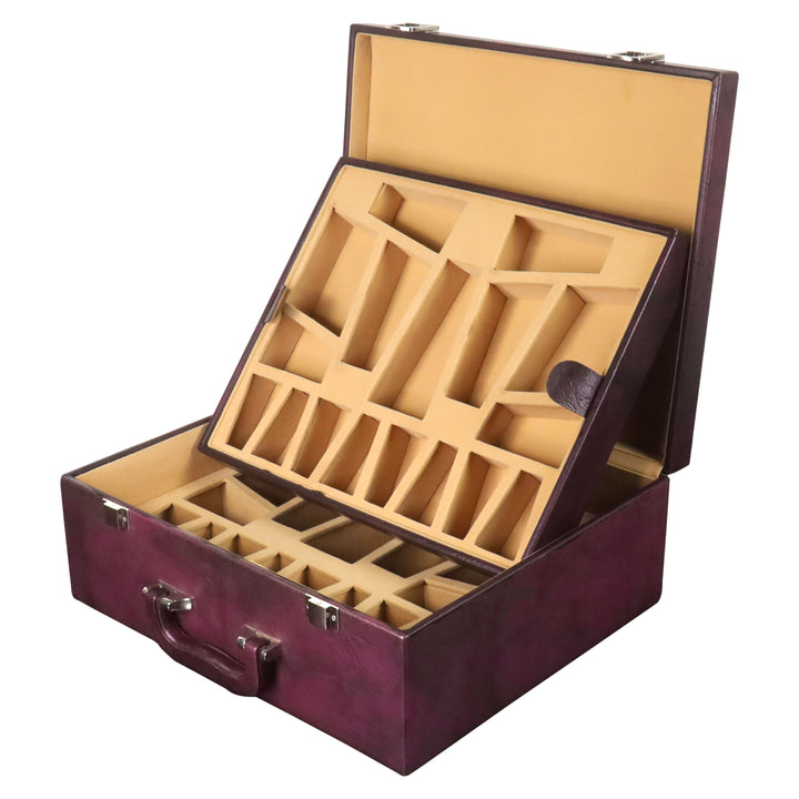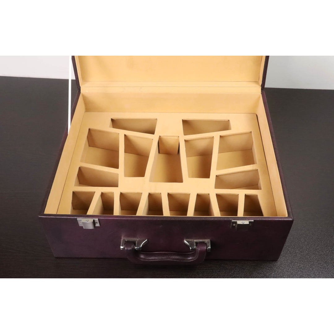 Our Burgundy Signature Chess Box is a luxuriously crafted premium chess box with boxed slotting for Luxury or Club Sized Chessmen.