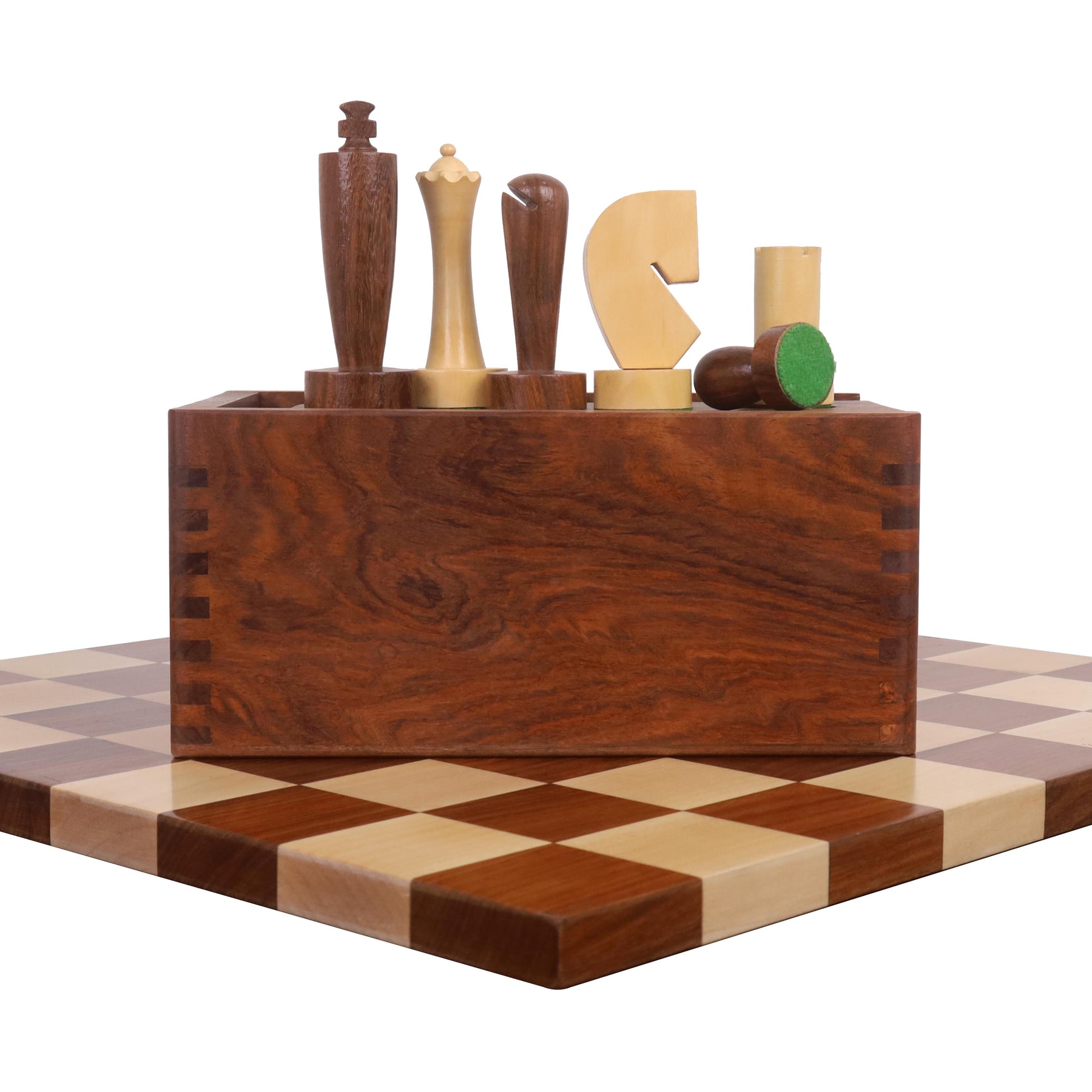 3.9" Minimalist Berliner Combo Chess set-Chess pieces with Board and Box - Golden Rosewood