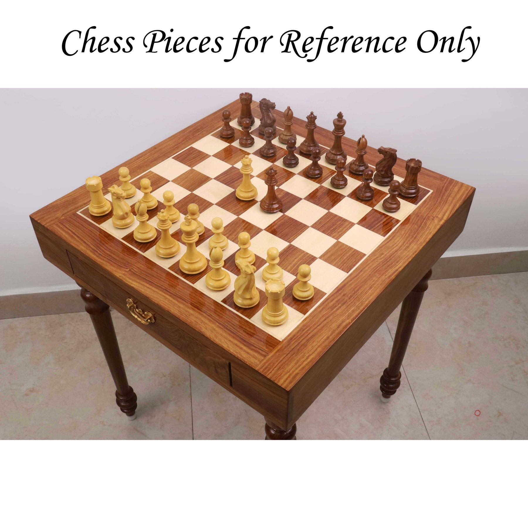 Elevate your game room with this 23" Tournament Chess Table, a blend of functionality and art. Featuring premium Golden Rosewood and Maple, this table serves as a dedicated station for serious players.