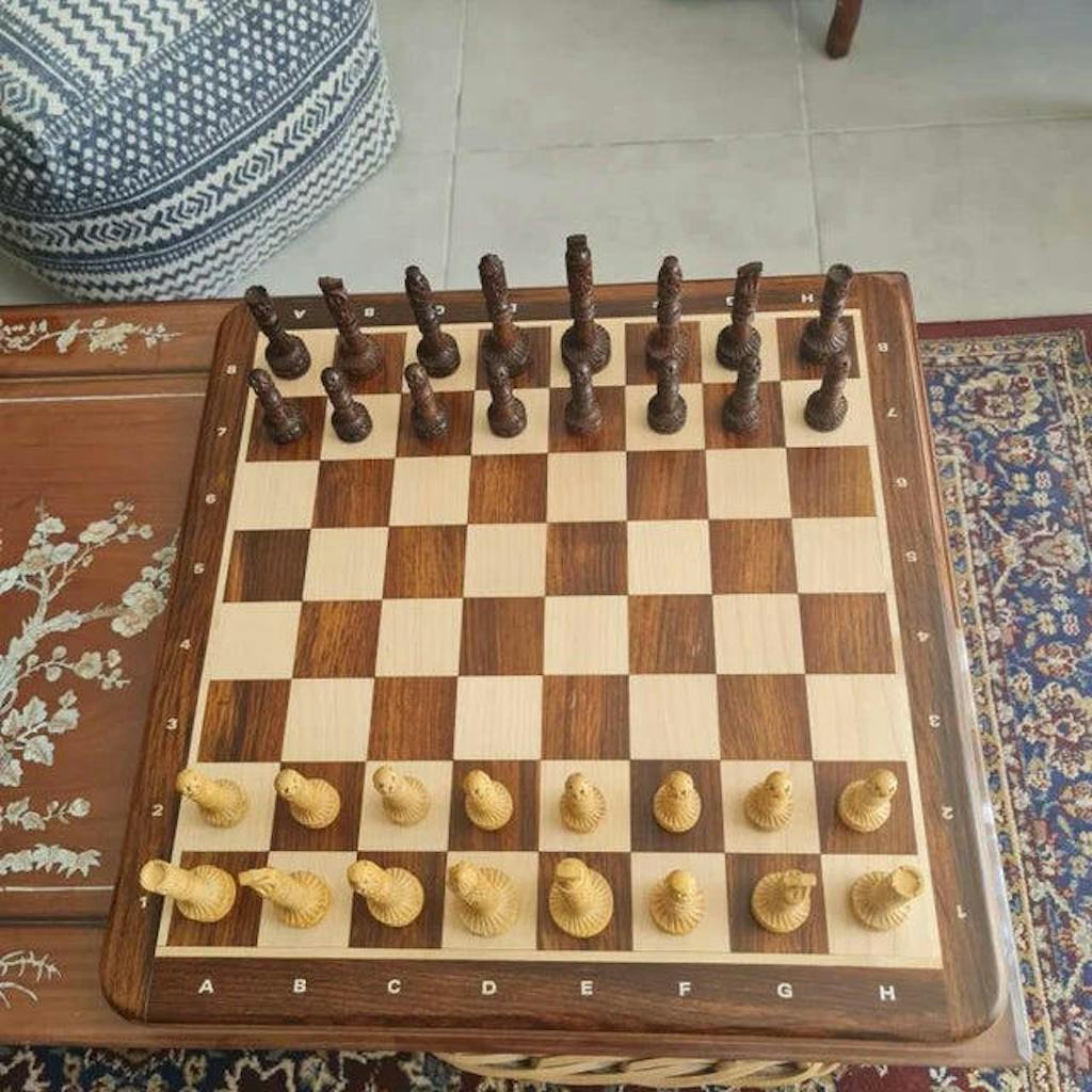 19" Golden Rosewood & Maple Wood Chess board - Algebraic Notations