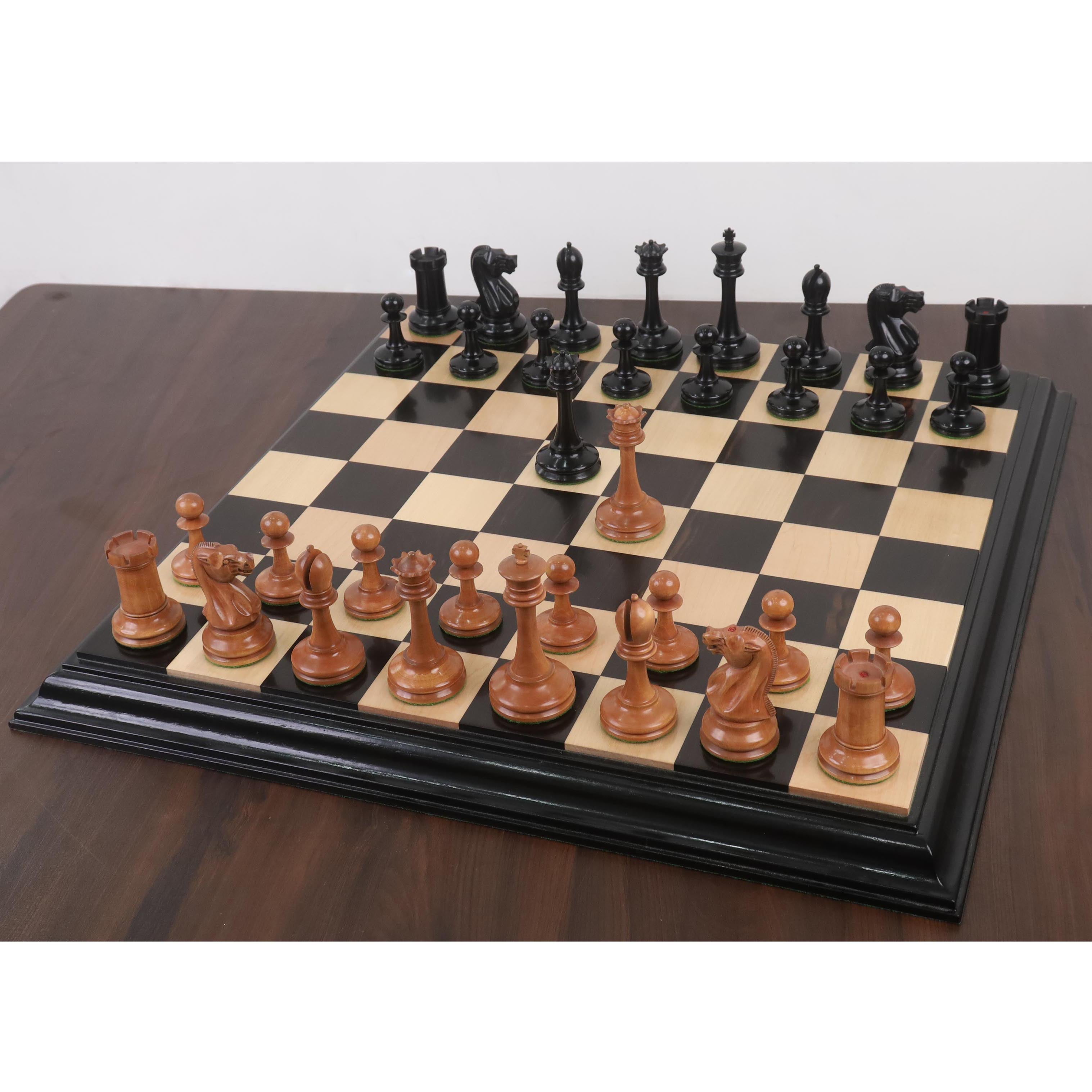 19th century B & Co Reproduced Luxury Chess Set- Chess Pieces Only- Ebony Wood & Antiqued Boxwood– 4.2″ King