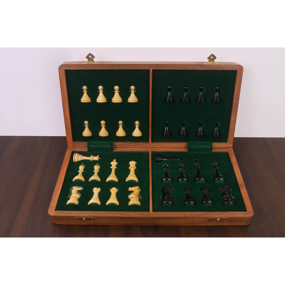 16" Premier Series Magnetic Travel Chess Set- Ebony & Maple Wood Board with Ebonised Boxwood Pieces