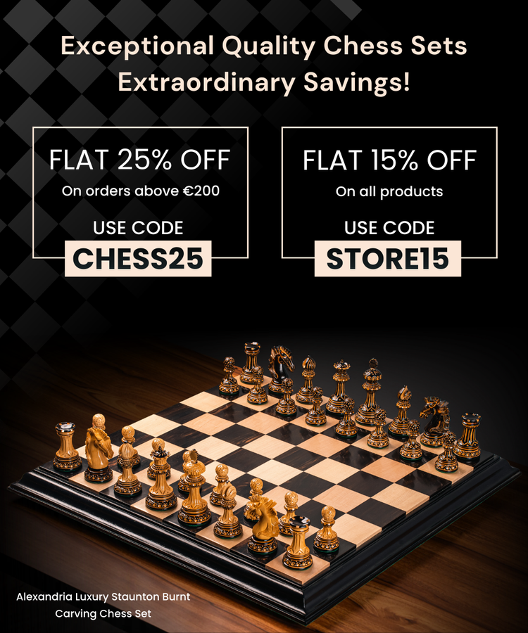 This distinctively designed Soviet Latvian set was a personal favorite of Soviet Grandmaster Mikhael Tal. These immaculately hand-carved reproductions from the Royal Chess Mall stables, has recently emerged as a best-seller, after it was prominently featured in the wildly popular Netflix original miniseries – The Queens Gambit. This set is available in Golden Rosewood and Boxwood.