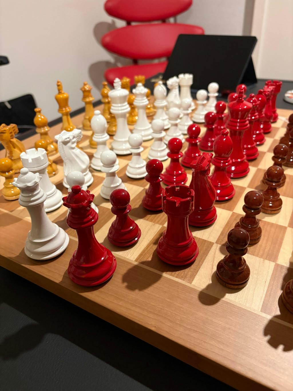 | Dark Chess Pieces | Red Painted Boxwood |