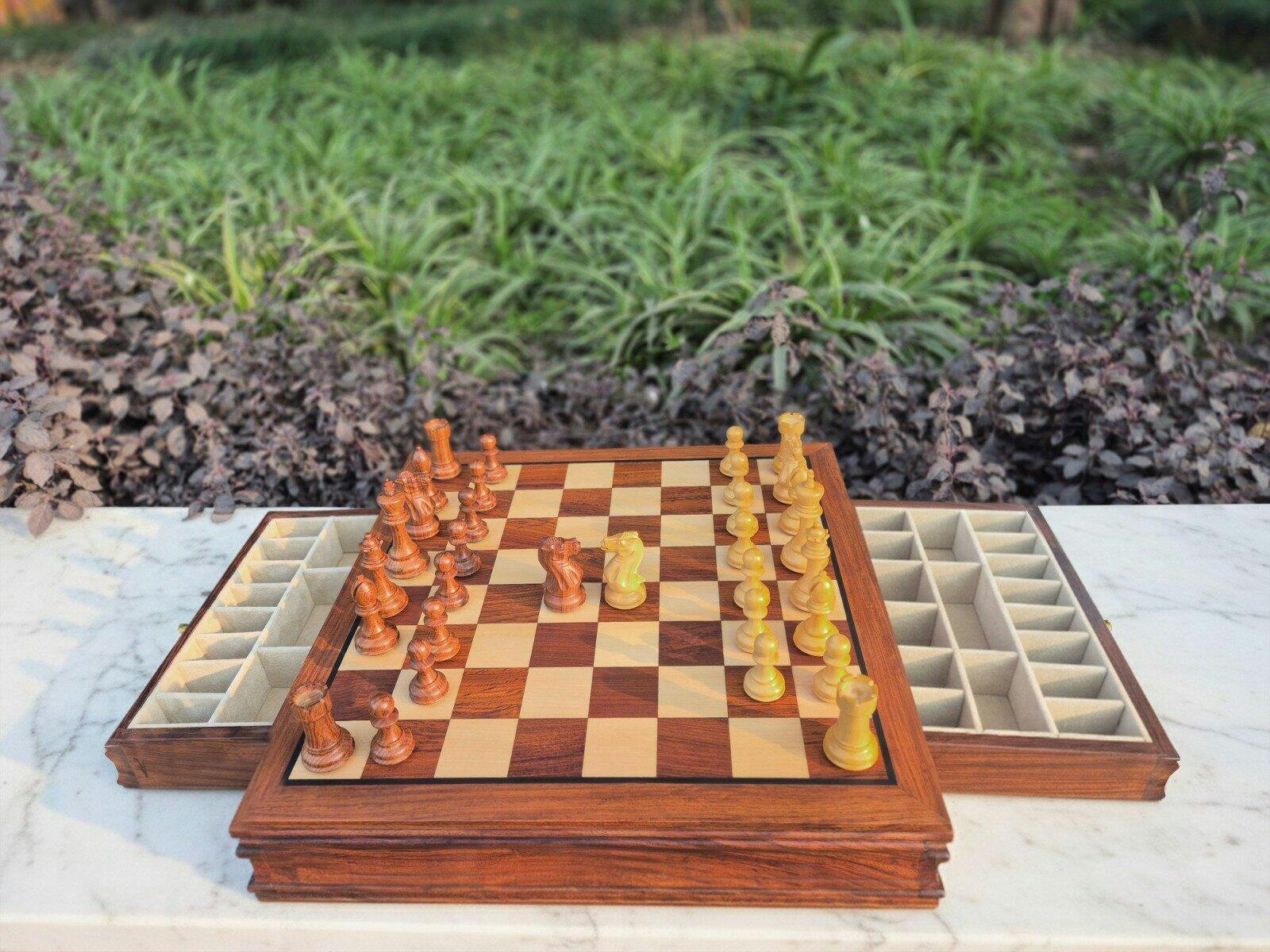 This is much more than just a travel chess set. It’s big and solid, and that’s exactly why I like it. I usually play indoors, but this set made me carry it to my nearby garden and enjoy slow games with friends in the evening breeze. The board stays stable, the pieces don’t tip over even on a stone bench, and packing everything back into the drawers is simple. It feels less like a game and more like a small ritual.