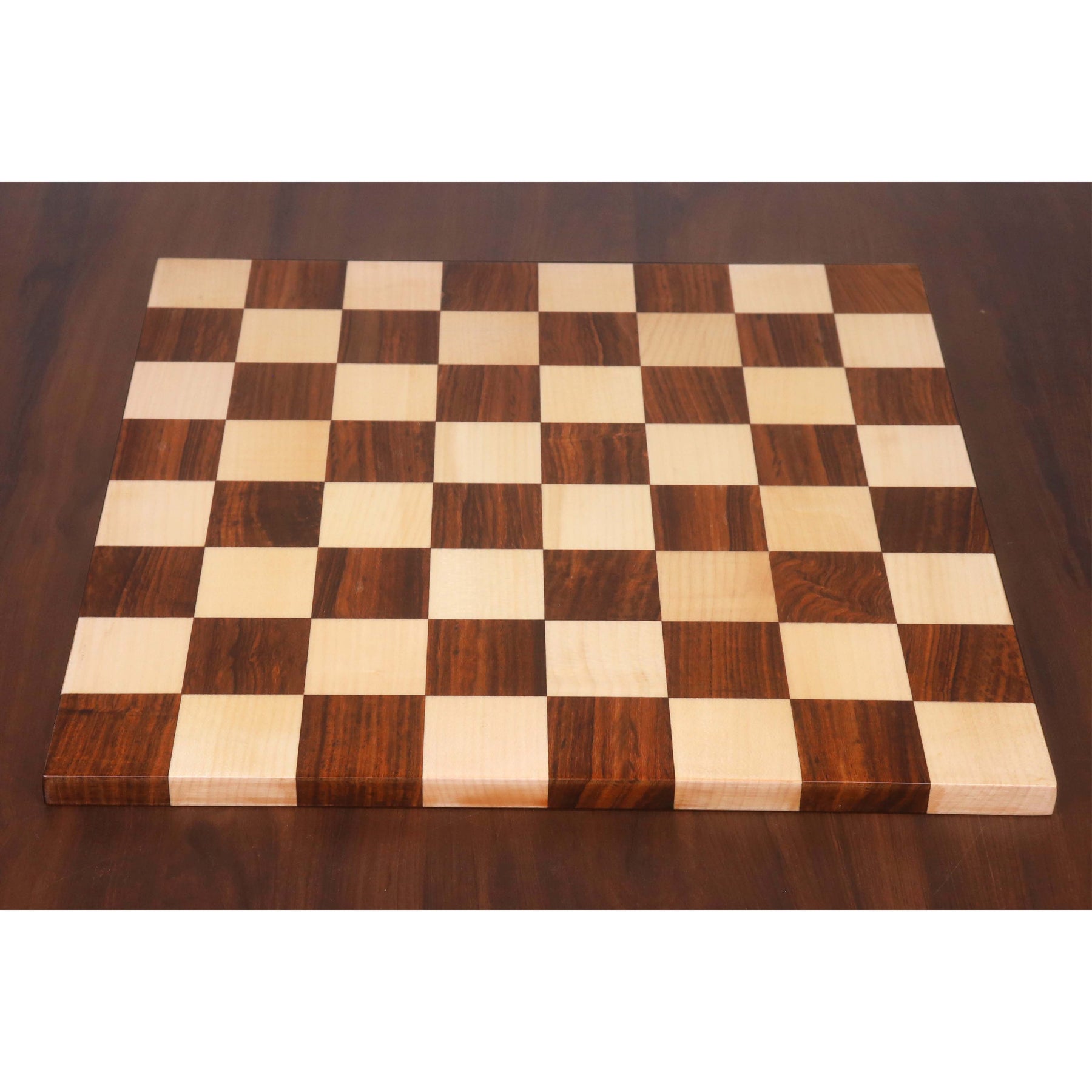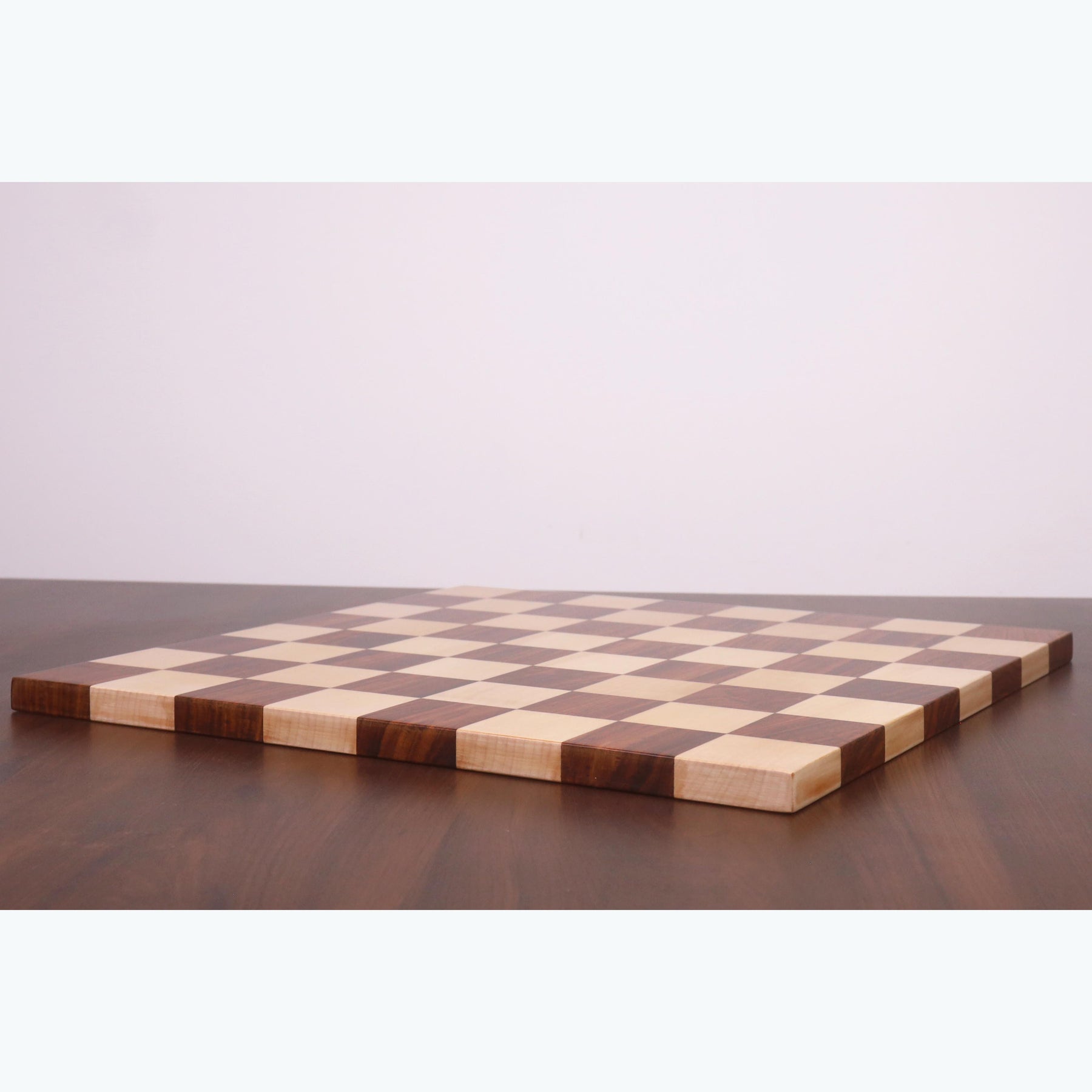 The Borderless Hardwood End Grain Chess Board is a true masterpiece of modern craftsmanship and style. Expertly handcrafted from Golden Rosewood and Maple, it features a seamless, borderless design that gives a sleek, contemporary look. The end grain construction enhances both strength and visual depth, while the 50 mm squares provide the perfect fit for tournament-sized pieces. An ideal choice for players and collectors who appreciate refined design and durability.