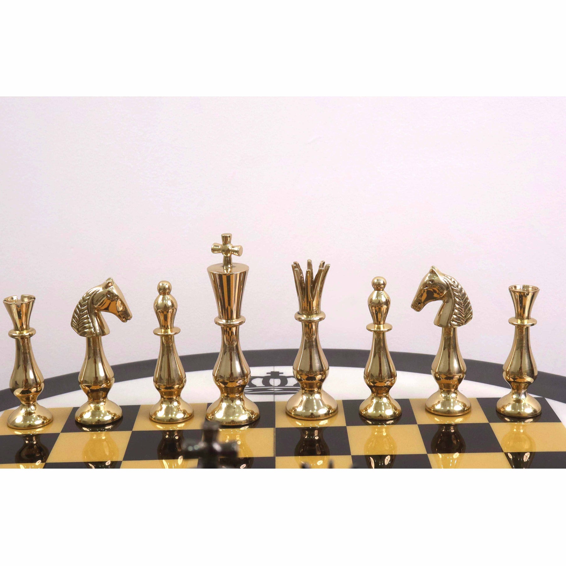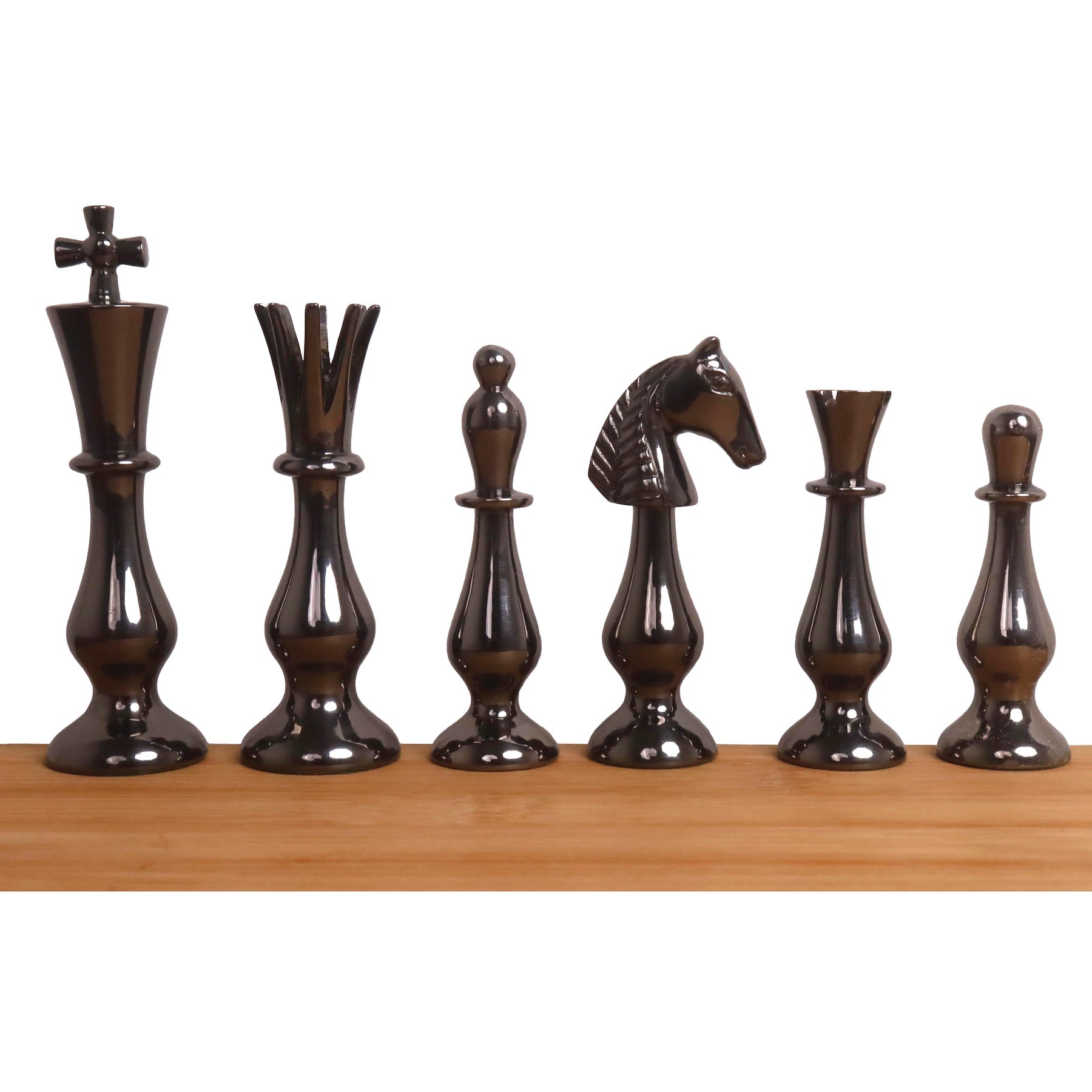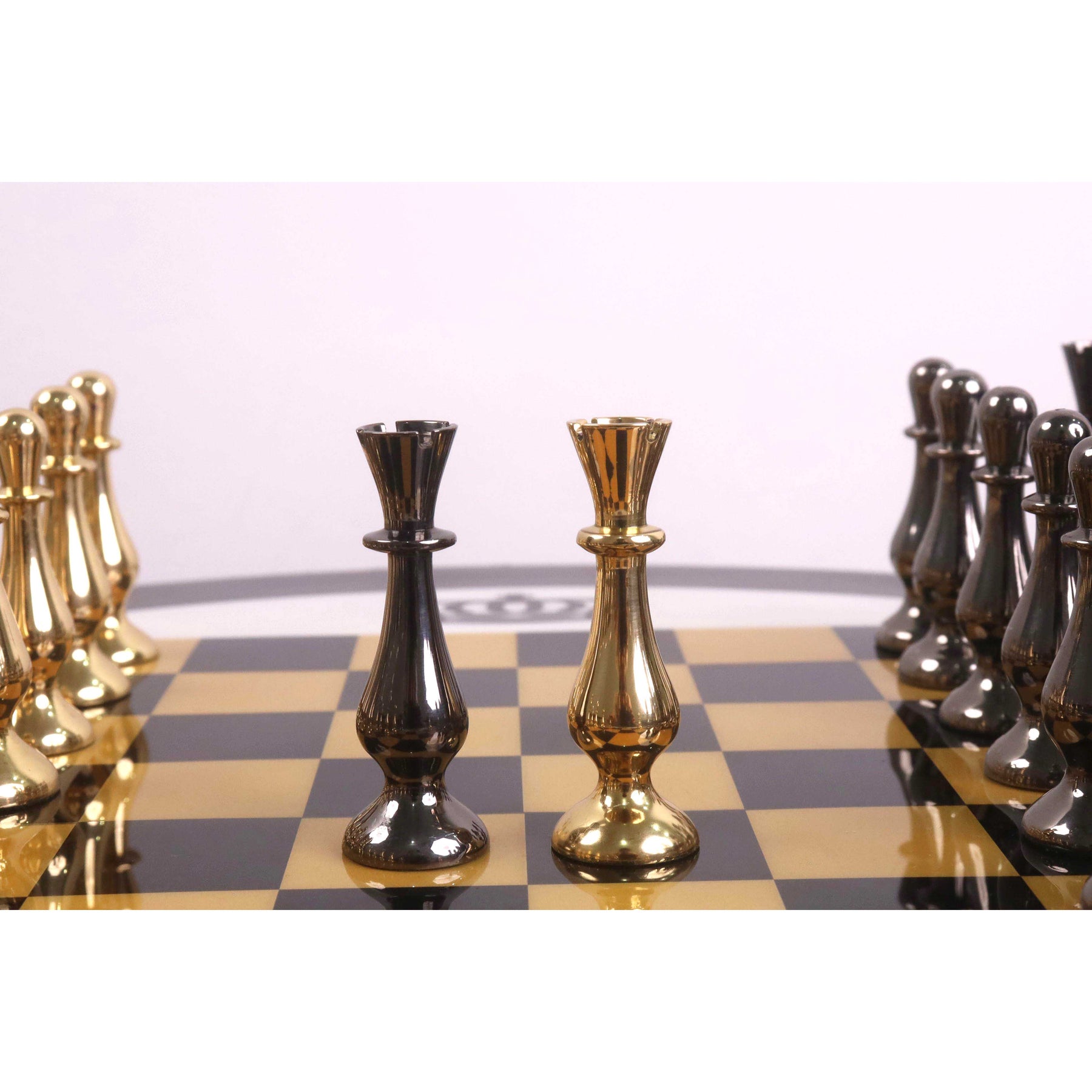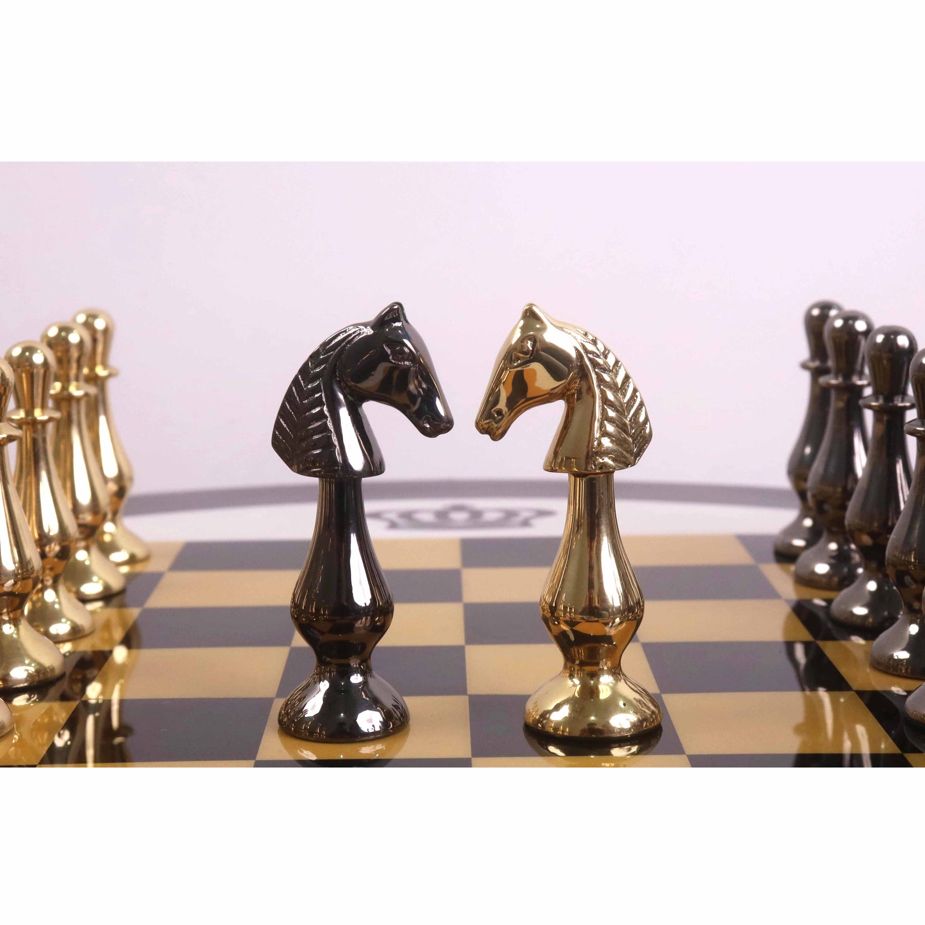 Juego de ajedrez de lujo de metal y latón de la serie Regal Curve de 3,6 pulgadas - Solo piezas - Dorado y gris metalizado