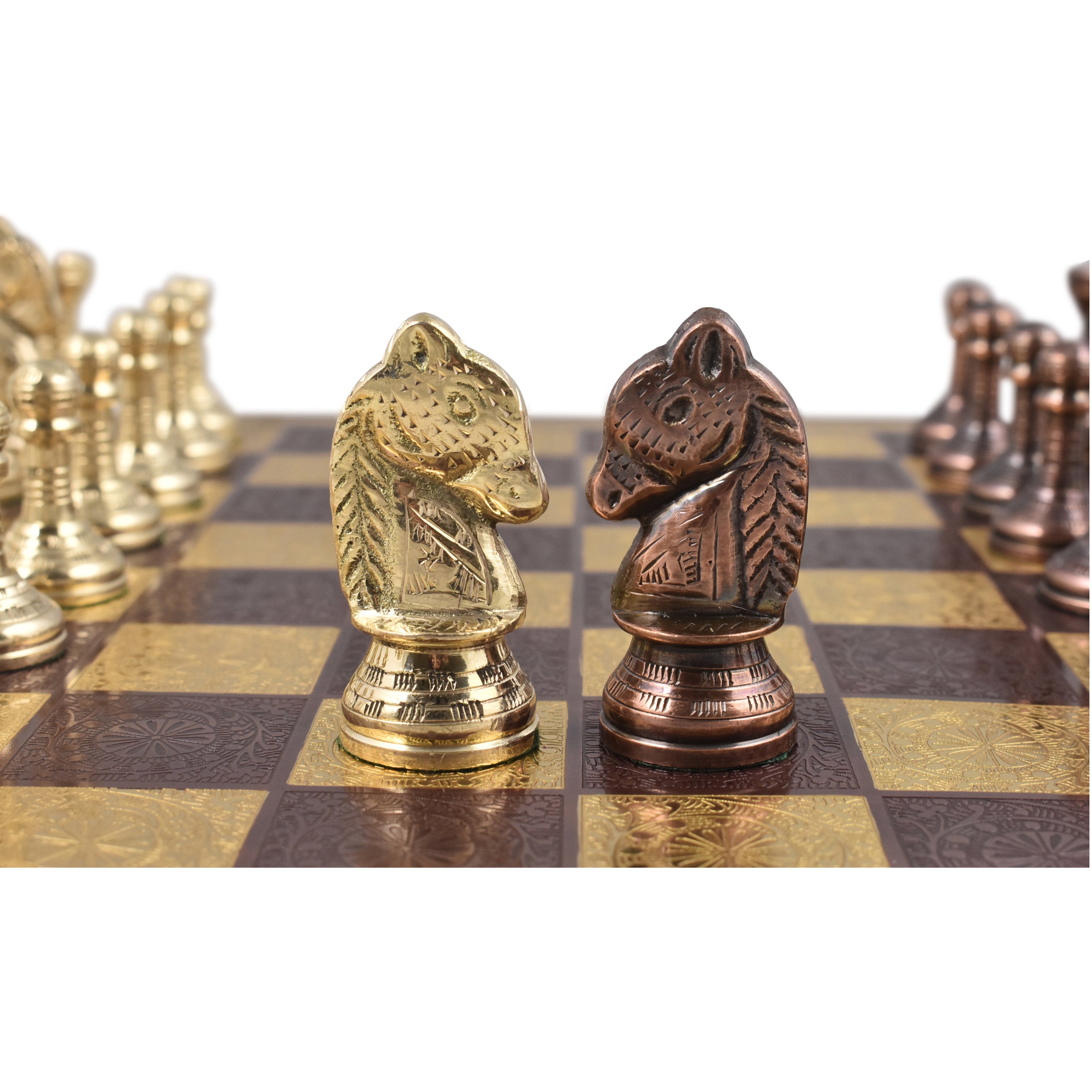 Juego de piezas y tablero de ajedrez de lujo de metal y latón inspirado en Staunton, ligeramente imperfecto - 30 cm - Cobre y oro - Obra de arte única - Liquidación de almacén - Envío solo a Europa