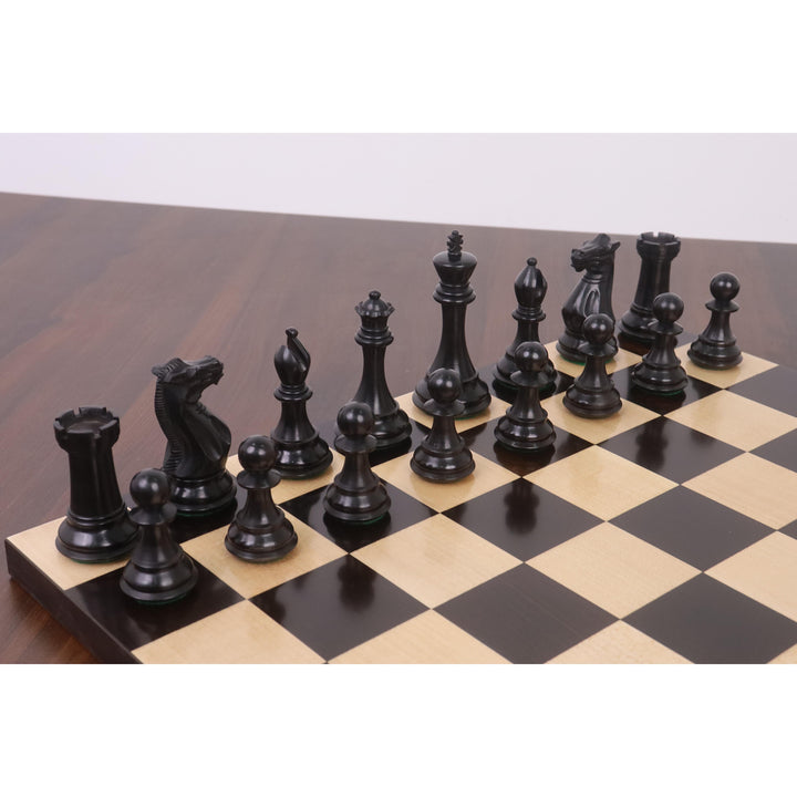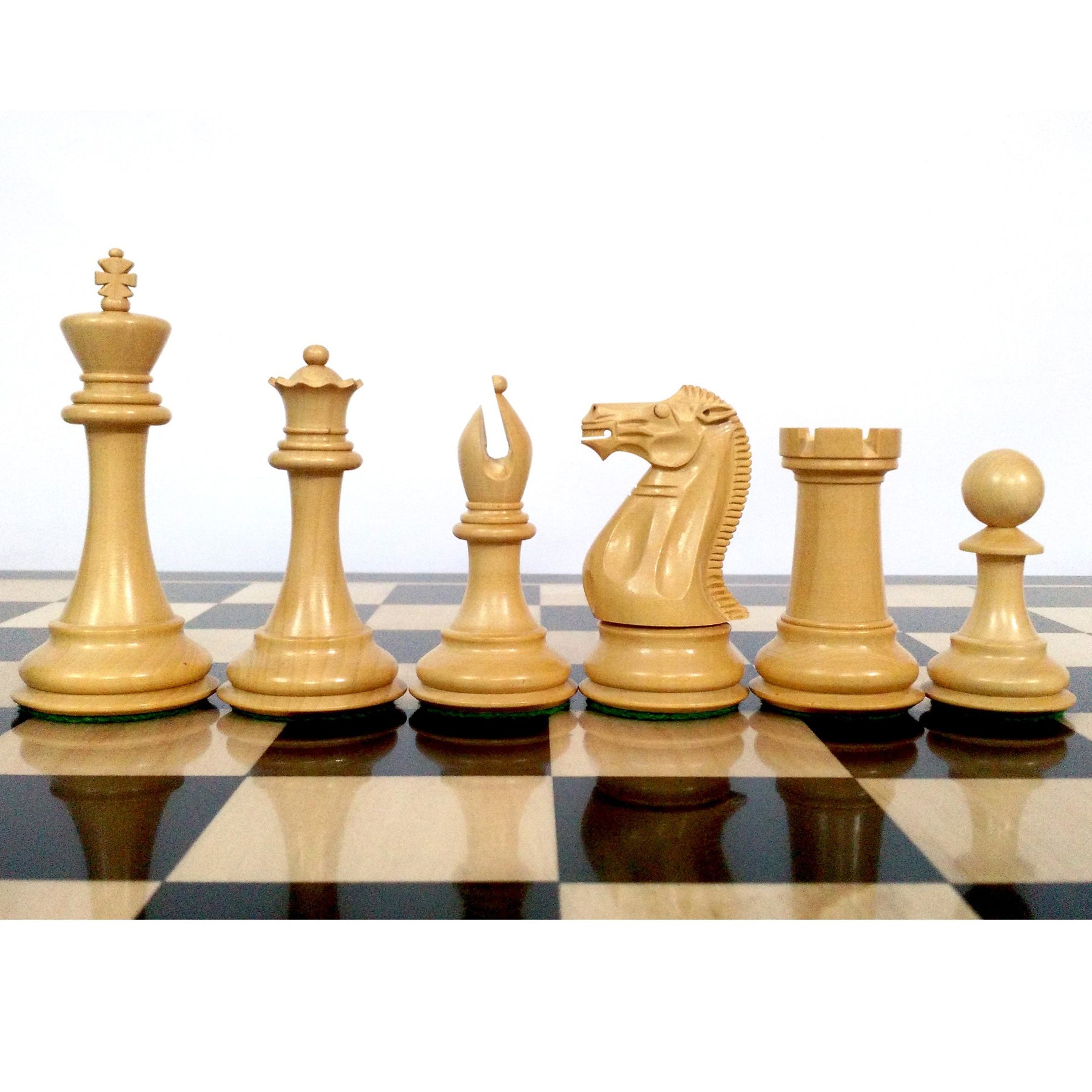 Las elegantes piezas de ajedrez Staunton son una variante elegante de las populares piezas de ajedrez Staunton. Aunque se ajustan a la filosofía de diseño tradicional del patrón staunton, este diseño tiene bases más anchas con vástagos más estrechos que les dan un aspecto elegante y distintivo. El caballero está magníficamente elaborado, con un rostro afilado y distintivo y rasgos elaborados con maestría.