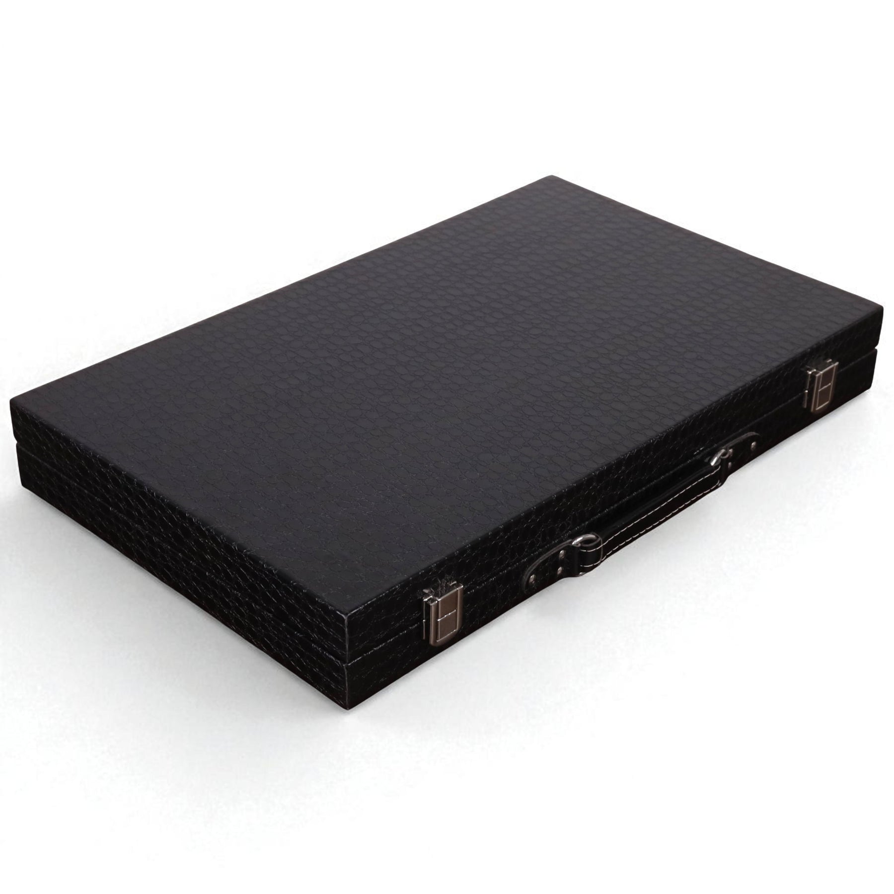 Mejora tus noches de juegos con esto Juego de backgammon de cuero sintético negro de 18 pulgadas, diseñado con un estilo elegante estilo maletín para facilitar su transporte y darle un toque de sofisticación. El diseño en elegante cuero sintético negro con cierres seguros y asa lo hace perfecto para viajar o exhibir, mientras que el atrevido superficie de juego roja y blanca crea un llamativo contraste que realza cada partido. Ideal tanto para principiantes como para jugadores experimentados, este conjunto combina Jugabilidad clásica con un acabado moderno y lujoso, lo que lo hace ideal tanto para disfrute personal como para regalar con estilo.
