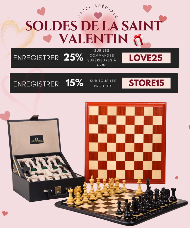 Pour certains, un jeu d'échecs peut être un simple plateau de jeu. Mais pour d'autres, il accompagne leur parcours intellectuel et stratégique. À Royal Chess Mall, Chaque pièce est fabriquée avec passion et intégrité, qu'elle soit en ébène foncé ou en palissandre rouge vif. Procurez-vous-en une pour découvrir un univers où l'histoire rencontre l'artisanat moderne, et où chaque mouvement semble ancré dans le présent.
