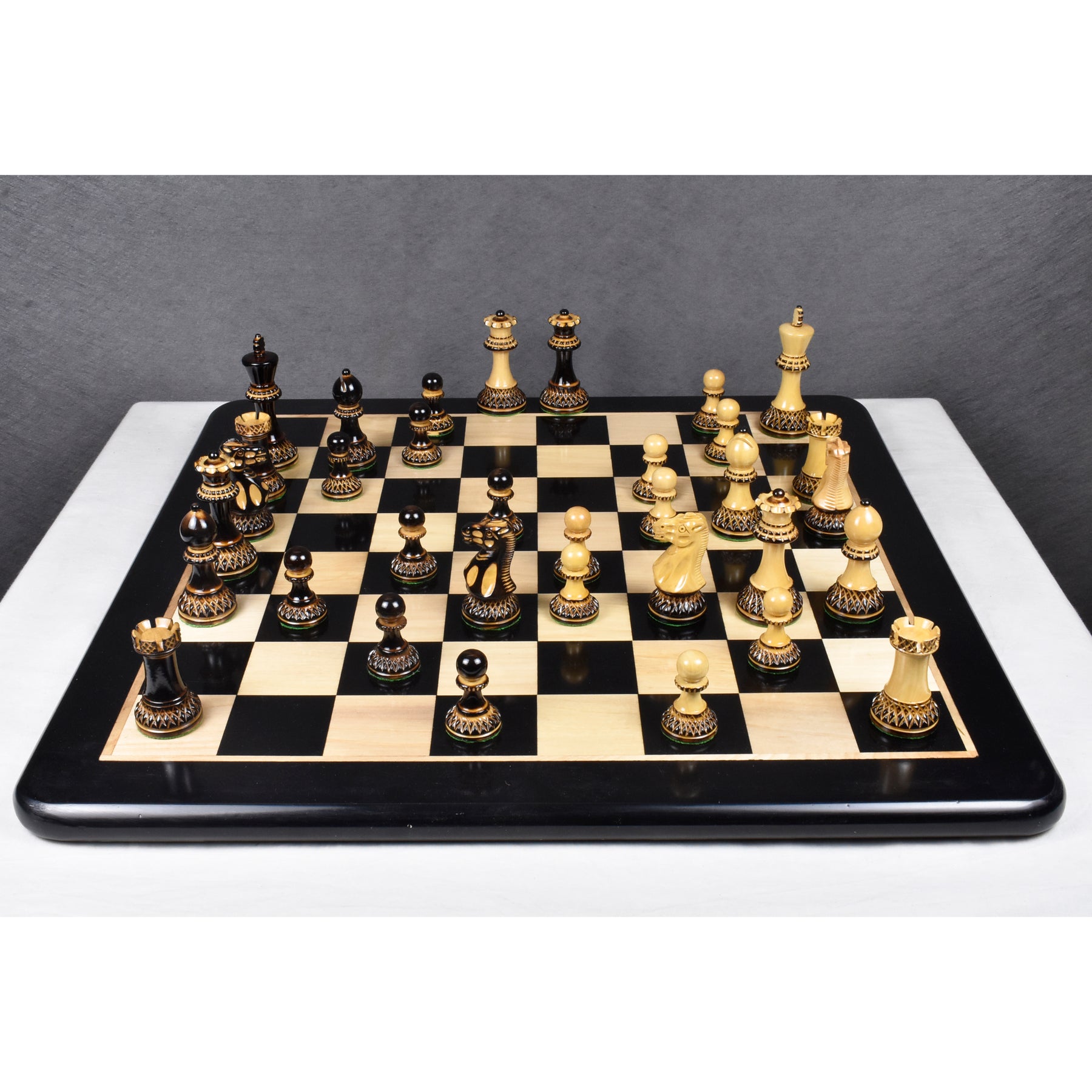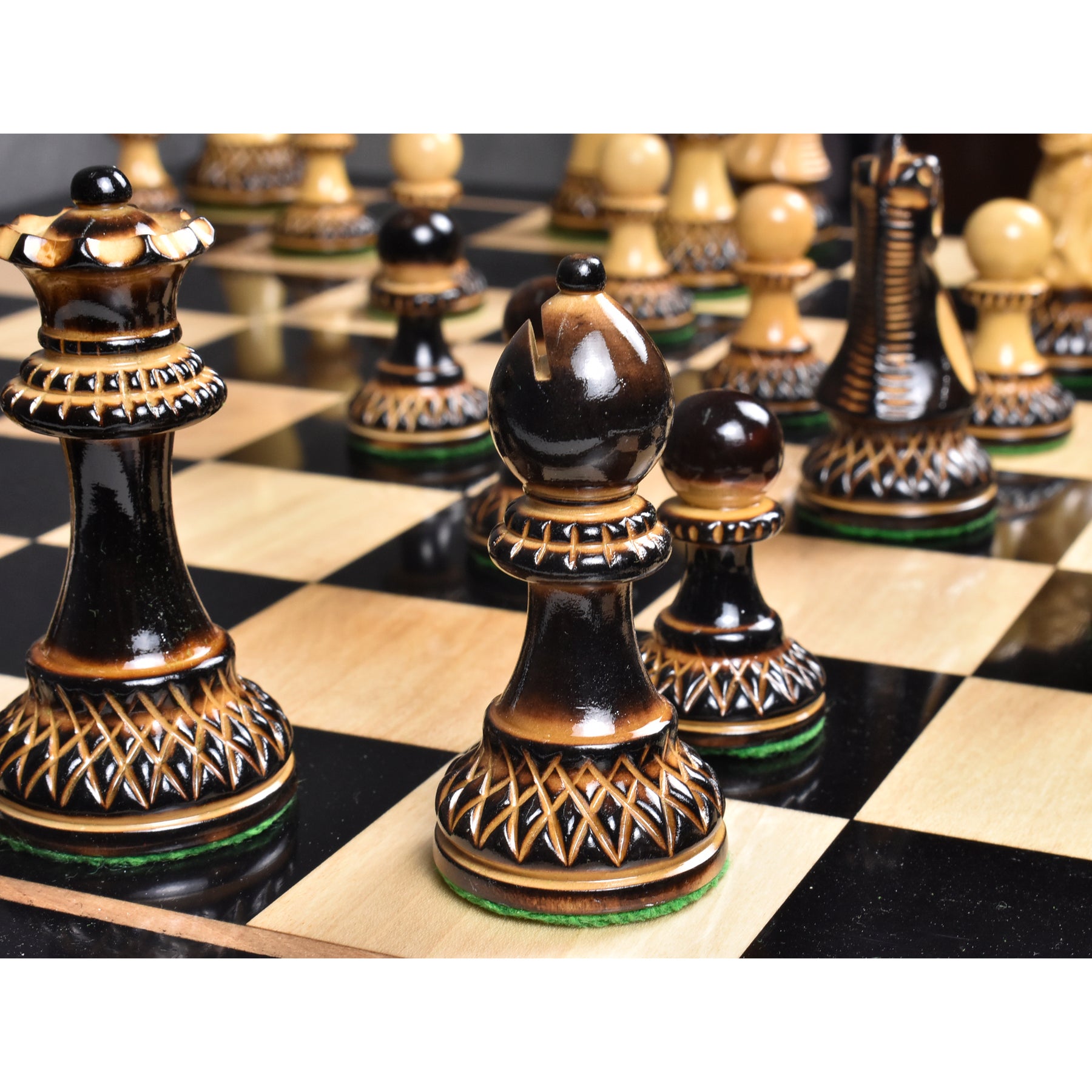 Jeu d'échecs sculpté Parker Staunton 3,9 pouces - Pièces d'échecs uniquement - Finition laquée (brillante) Bois de buis - Liquidation d'entrepôt - Expédition en Europe uniquement