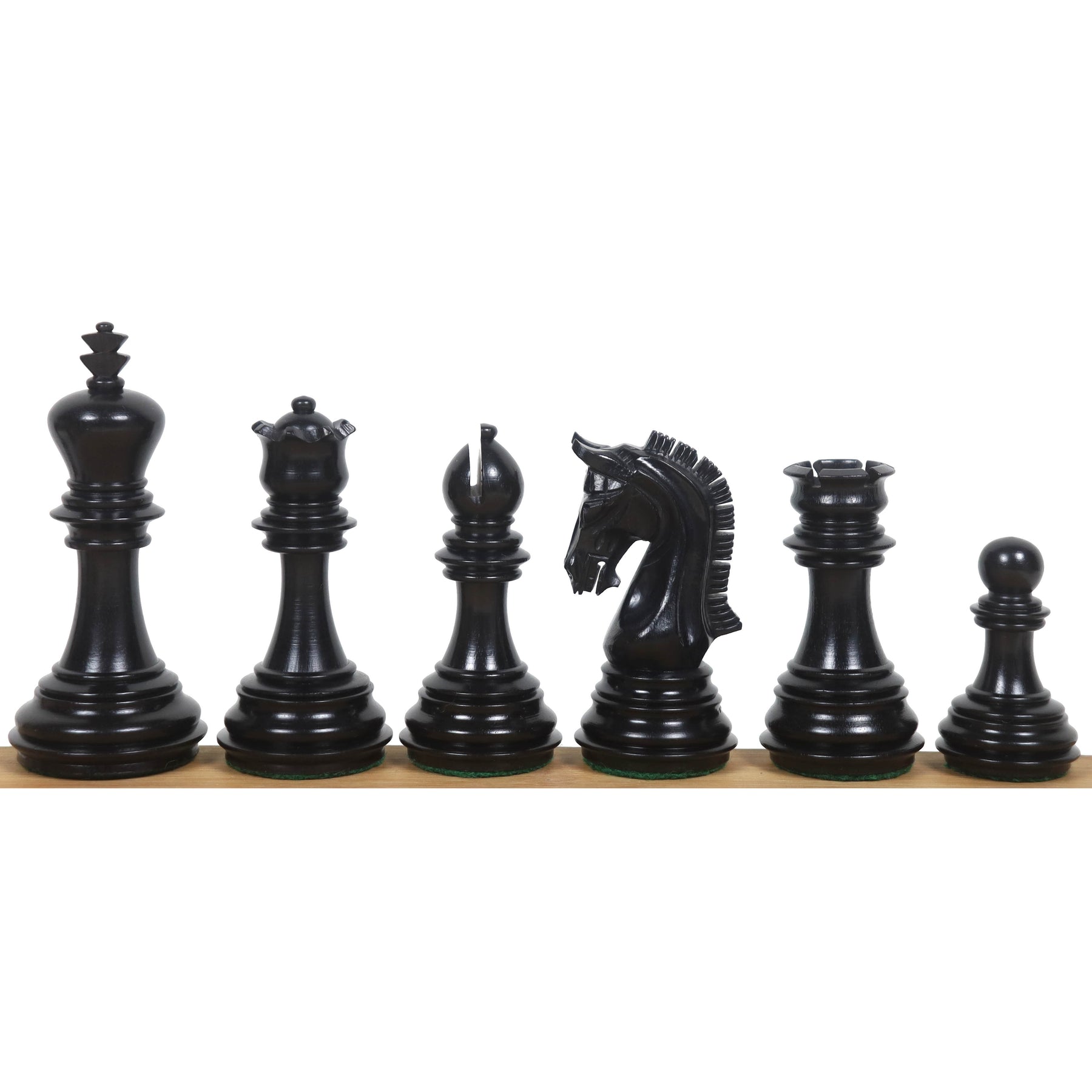 Pezzi di scacchi in legno di ebano di lusso Imperial Staunton da 3,8" con scacchiera in legno massiccio intarsiato di ebano e acero da 21".