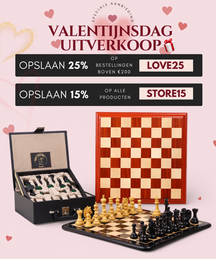 Zoals eerder vermeld is Staunton de gouden standaard in schaken, erkend en wereldwijd geaccepteerd in 1849. Het klassieke ontwerp en de praktische eigenschappen maken het een topkandidaat voor toernooien en competities. Staunton schaaksets hebben opvallende ridderkoppen, duidelijk te onderscheiden stukken en een eenvoudig maar elegant ontwerp. En je kunt kiezen uit verschillende materialen, van hout tot metaal en plastic.