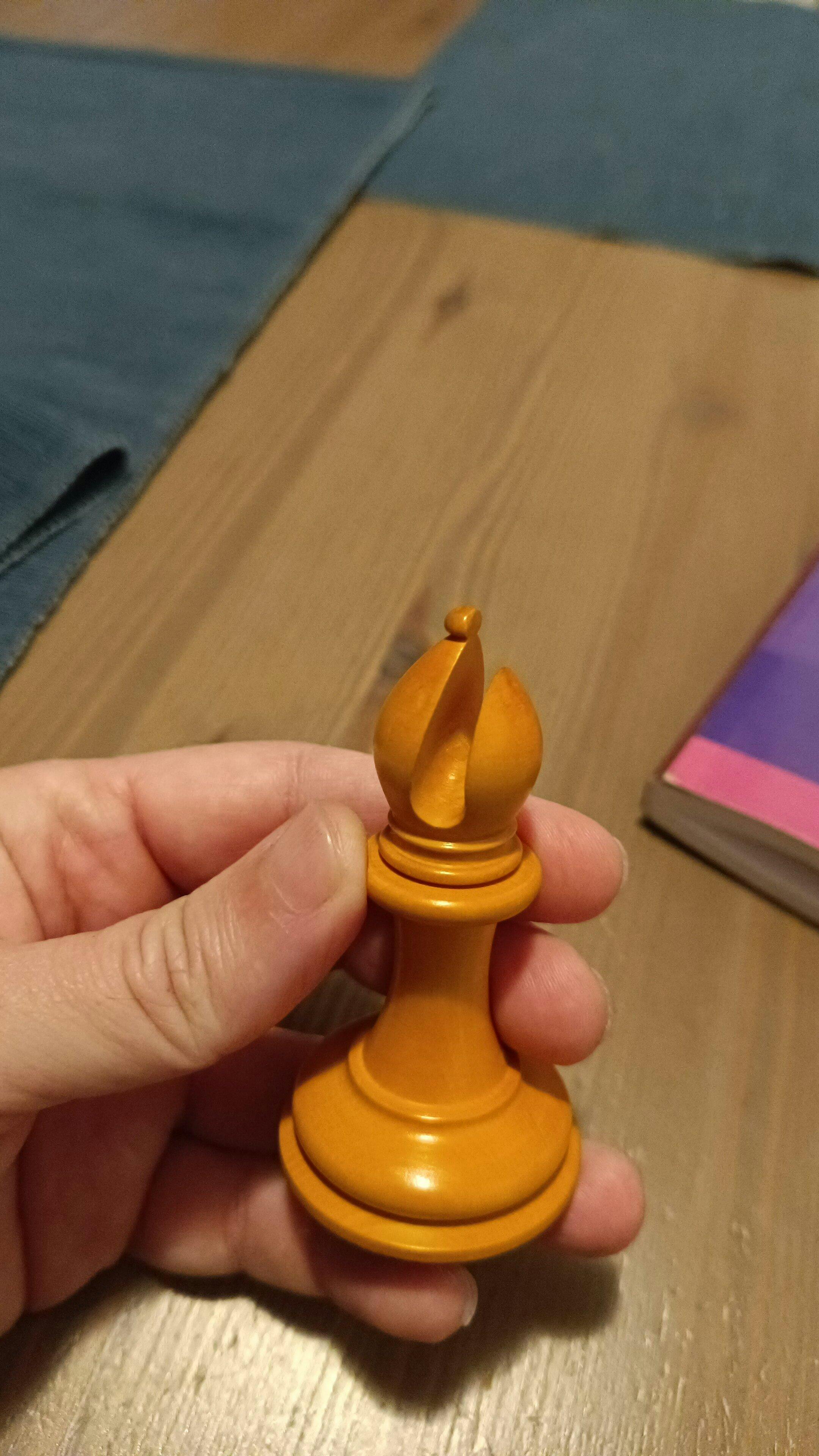 Las piezas de boj envejecido doradas simulan 70 años de antigüedad, piezas de ébano impecables y totalmente sobrias, diseño fiel Nath cooke para coleccionismo contemporáneo , set hermoso! Aunque recibí la base de la dama quebrada sé que sin problemas me será reemplazada en este mi doceavo set
