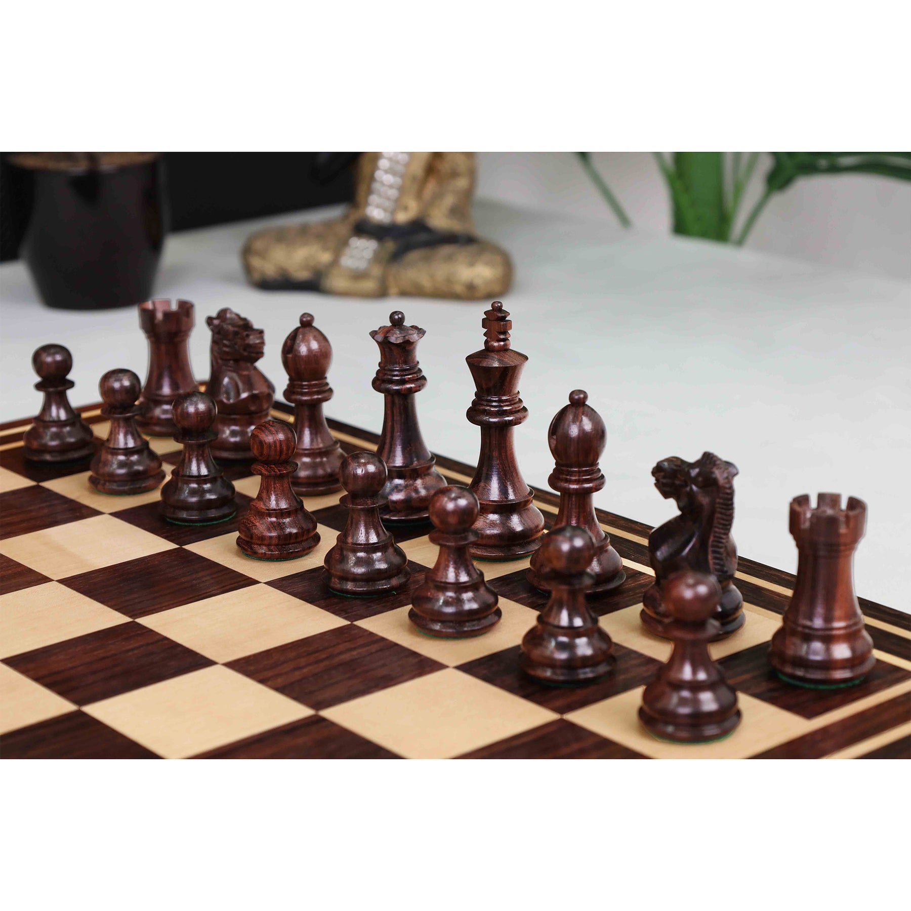 Experience refined craftsmanship with the 16" Windsor Executive Magnetic Travel Chess Set – Rosewood & Maple Wood Board with Rosewood Pieces. Designed for players who value both elegance and practicality, this set features a handcrafted Rosewood and Maple wood board paired with finely carved Staunton-style Rosewood and Boxwood pieces.