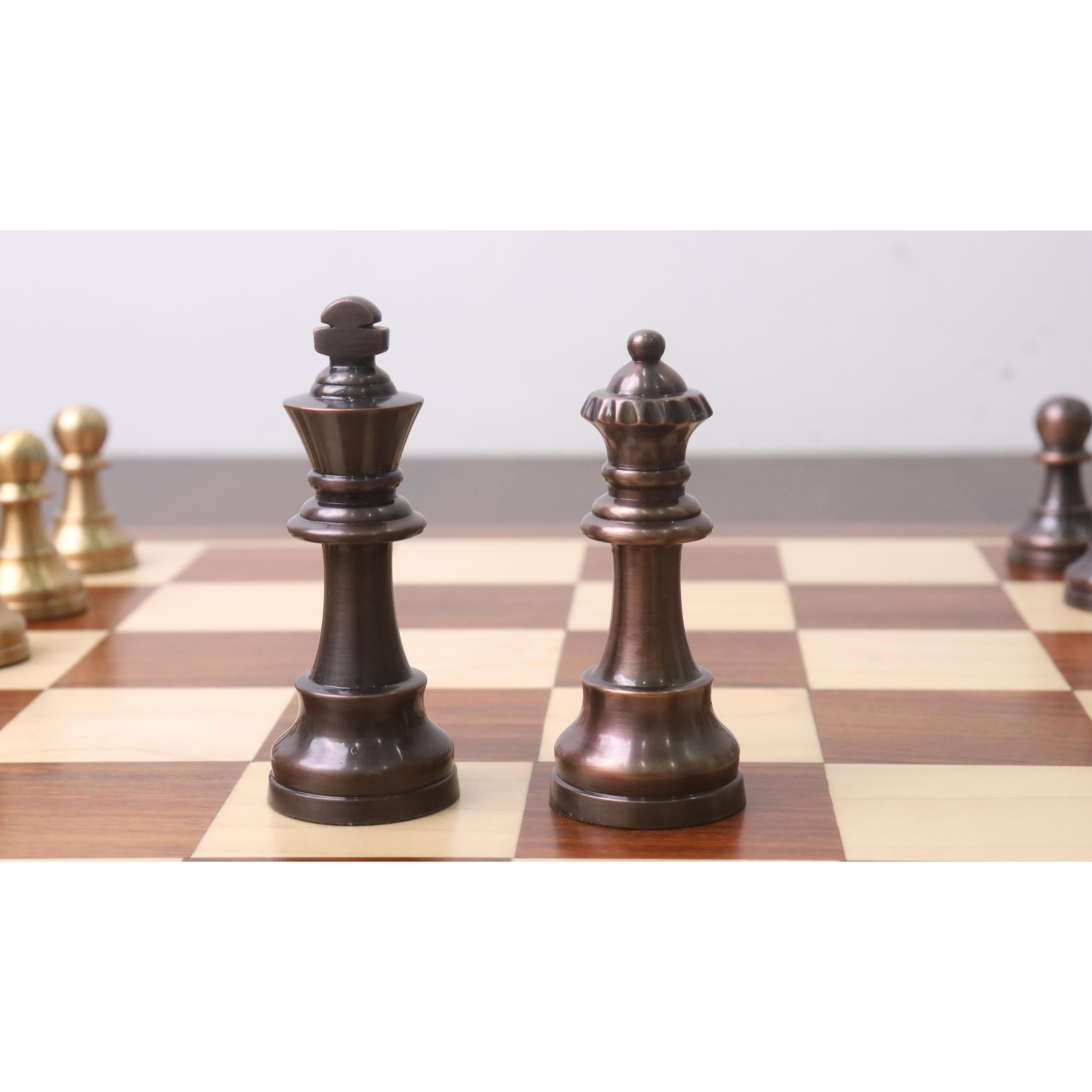 Drawing inspiration from our best selling line of staunton pattern chessmen, our Pro Staunton chessmen are now being offered in luxurious brass metal with Antiqued Copper and Gold Finish.