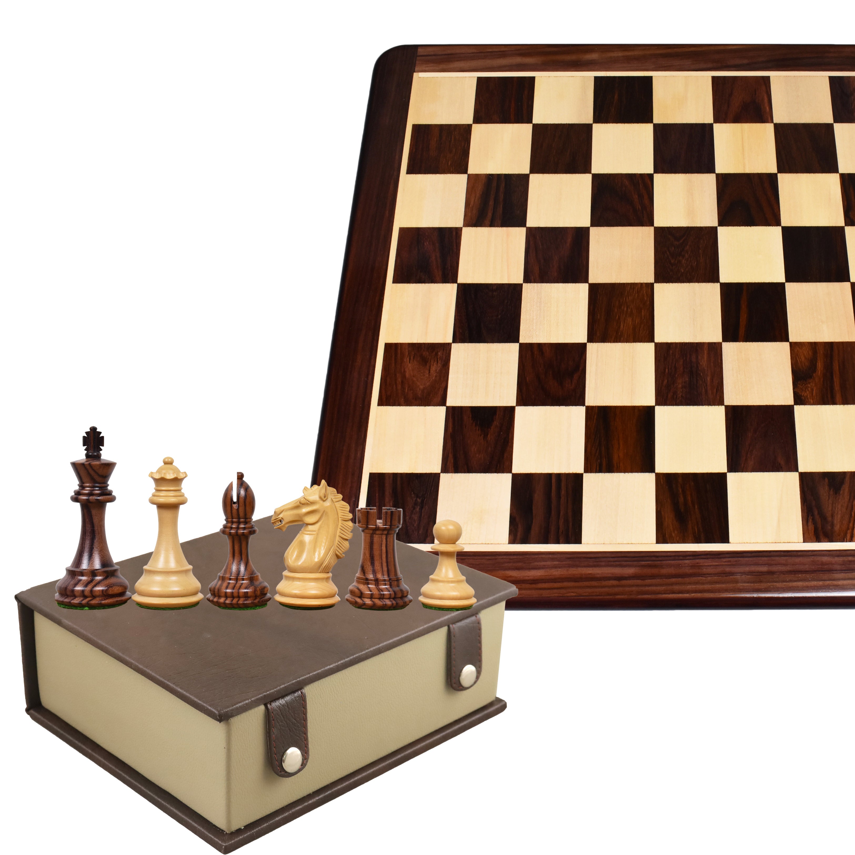 Dan Wood 3.9" Exclusive Alban Staunton Chess Set Combo - Pieces in Rosewood with Board and Box
