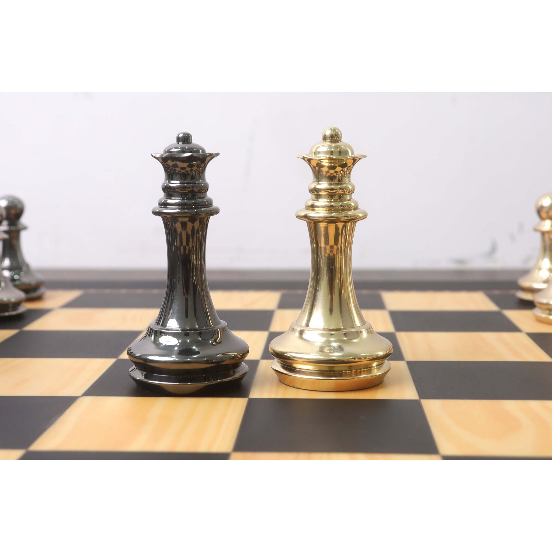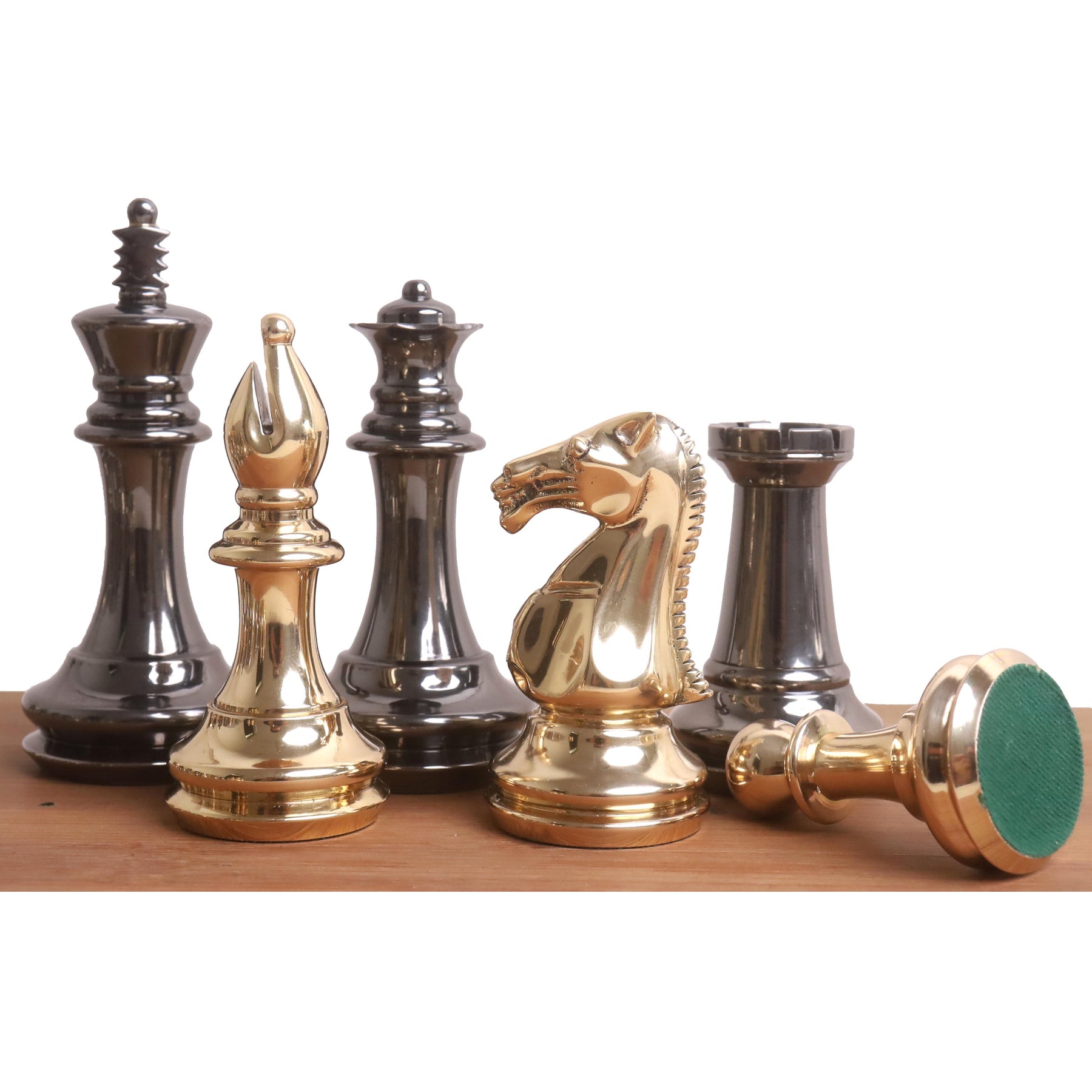 3.9" Fierce Knight Series Brass Metal Luxury Chess Set - Pieces Only - Metallic Gold & Grey - Warehouse Clearance - USA Shipping Only