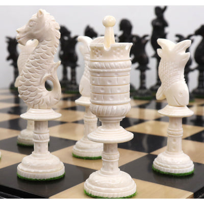 4.8" Water Kingdom Series Hand Carved Chess Pieces Only Set - Camel Bone