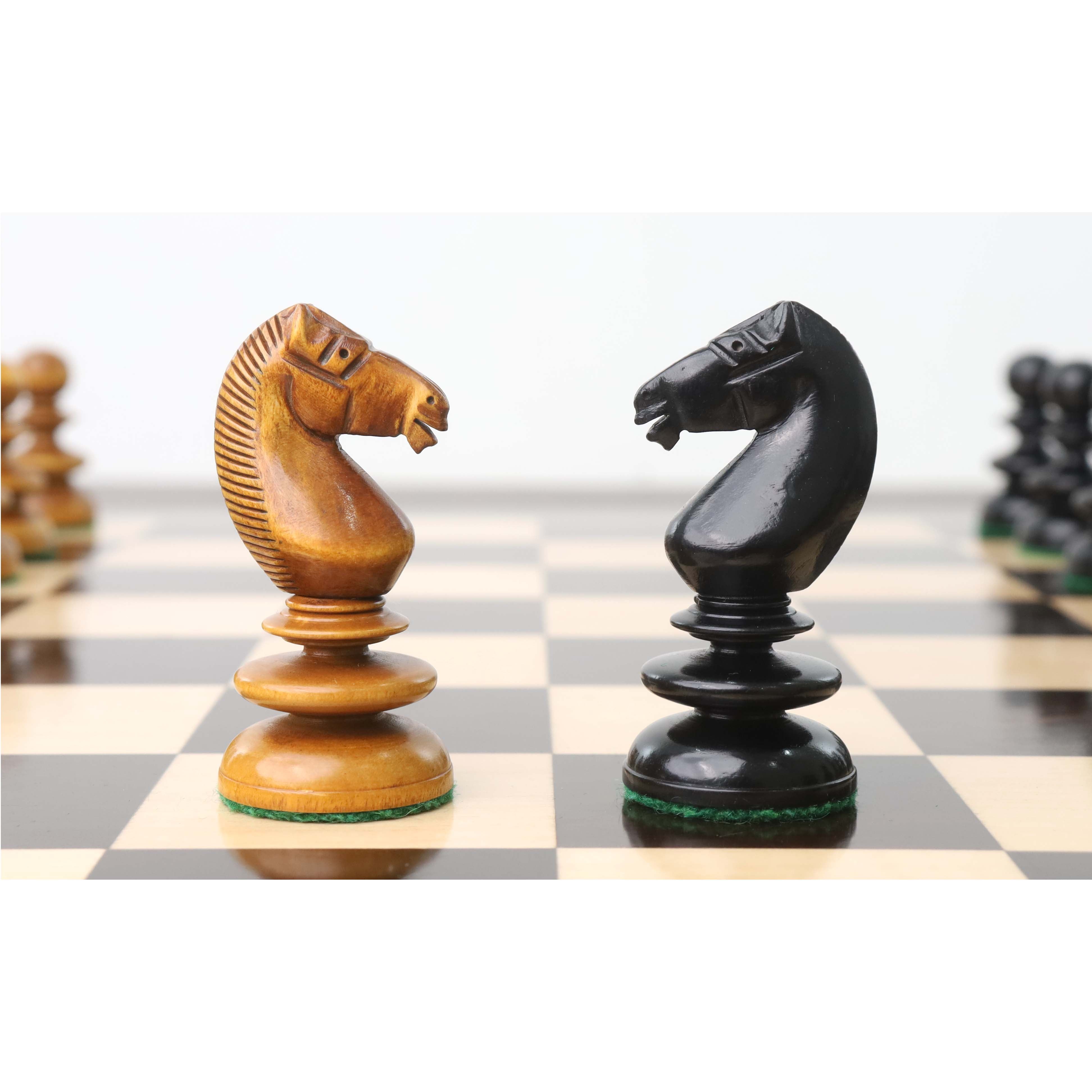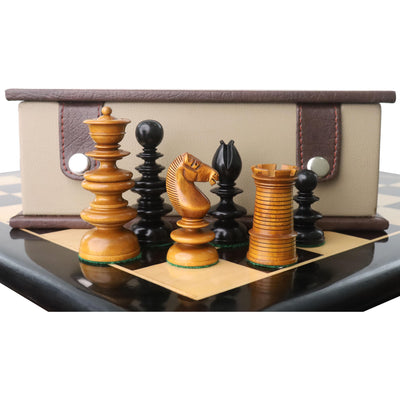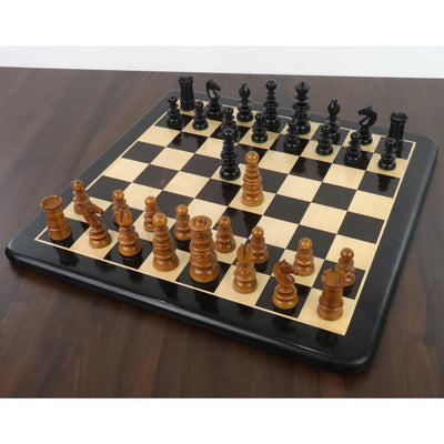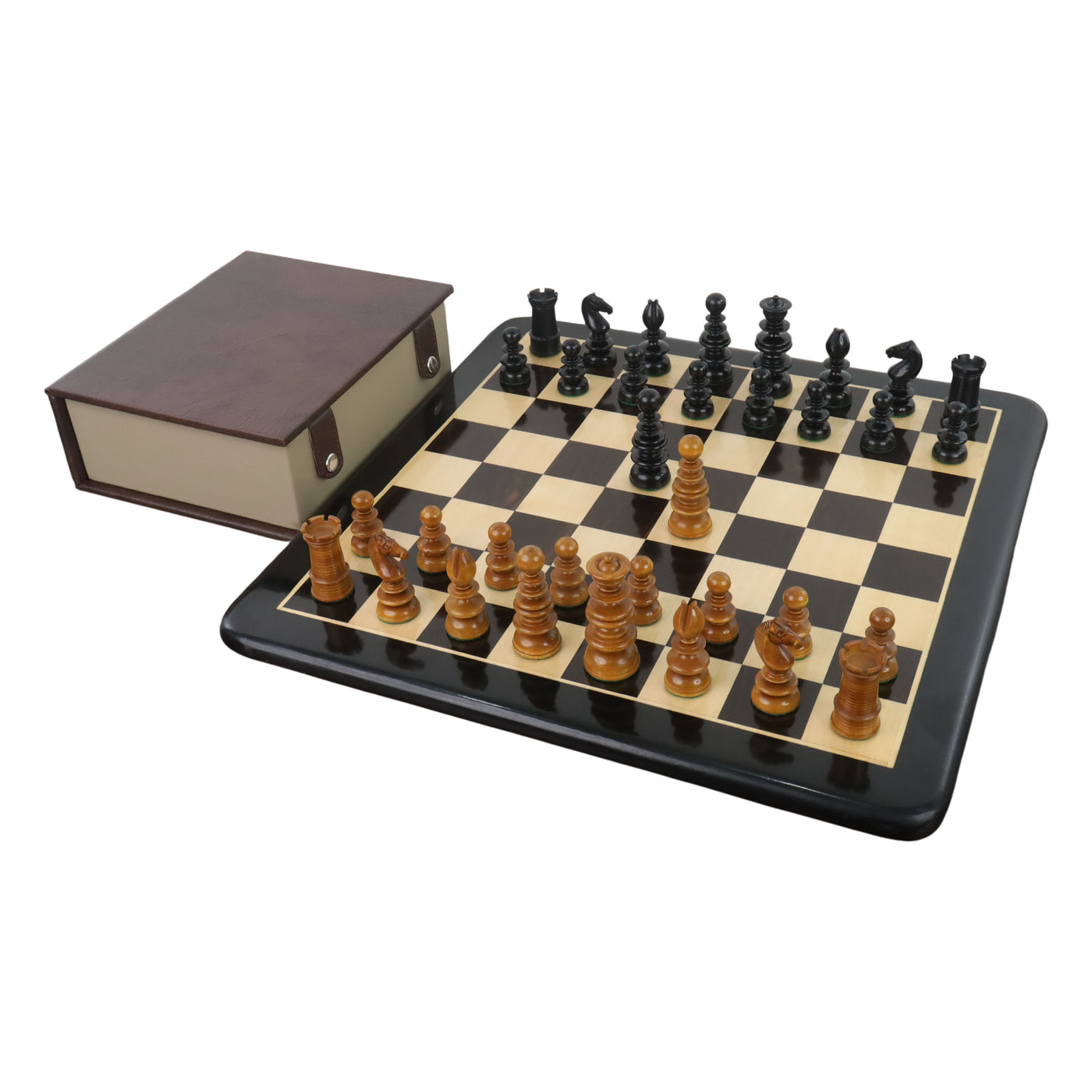 Combo of 3.3" St. John Pre-Staunton Calvert Chess set - Pieces in Ebony Wood with 19 inches Chess Board and Storage Box