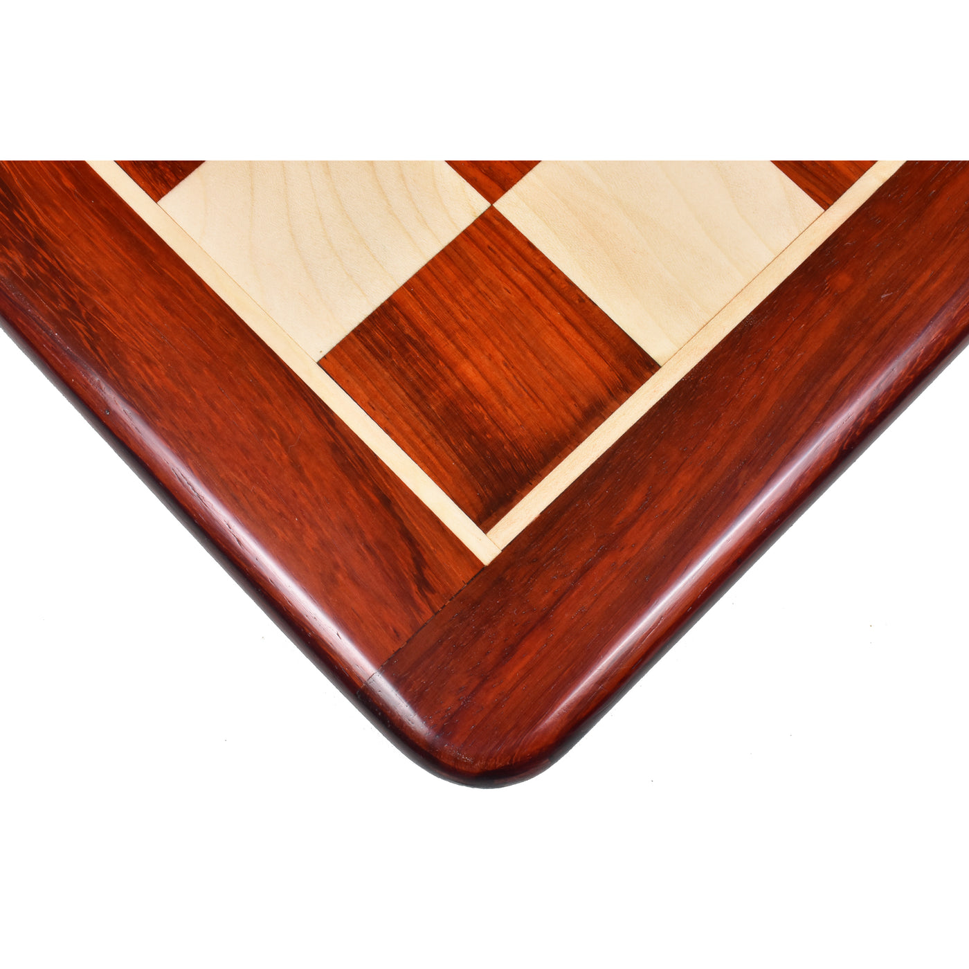 The board is superb; squares comfortable to set the pieces, and the edges just enough spare space to accommodate captured pieces. The contrast between light and dark squares is very good. Again, no confusion possible here.