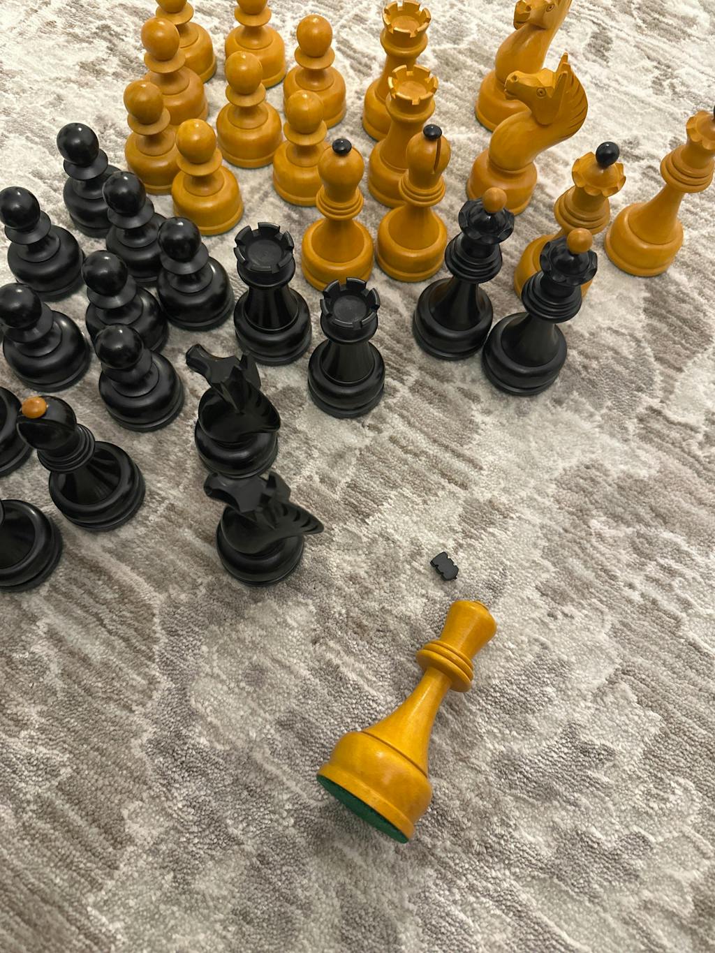 The chess pieces have a very unique profiling with very broad and chunky bases, which greatly increase the stability during play.