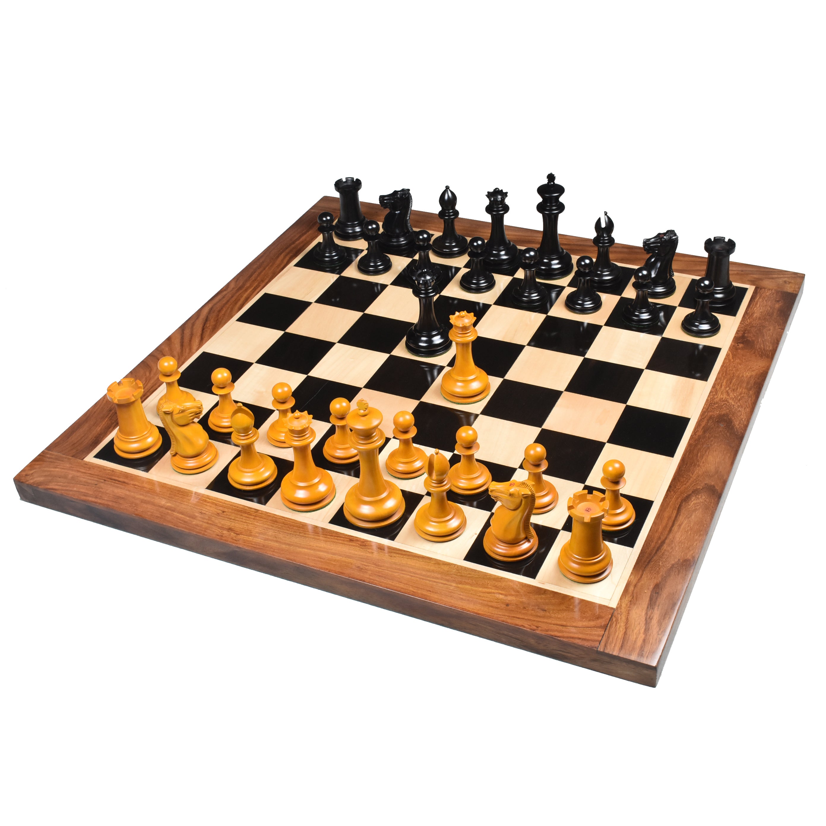 Slightly Imperfect 1849-50 Leuchars Cook Staunton Chess Set - Chess Pieces Only - Ebony Wood & Antiqued Boxwood - 4.5"