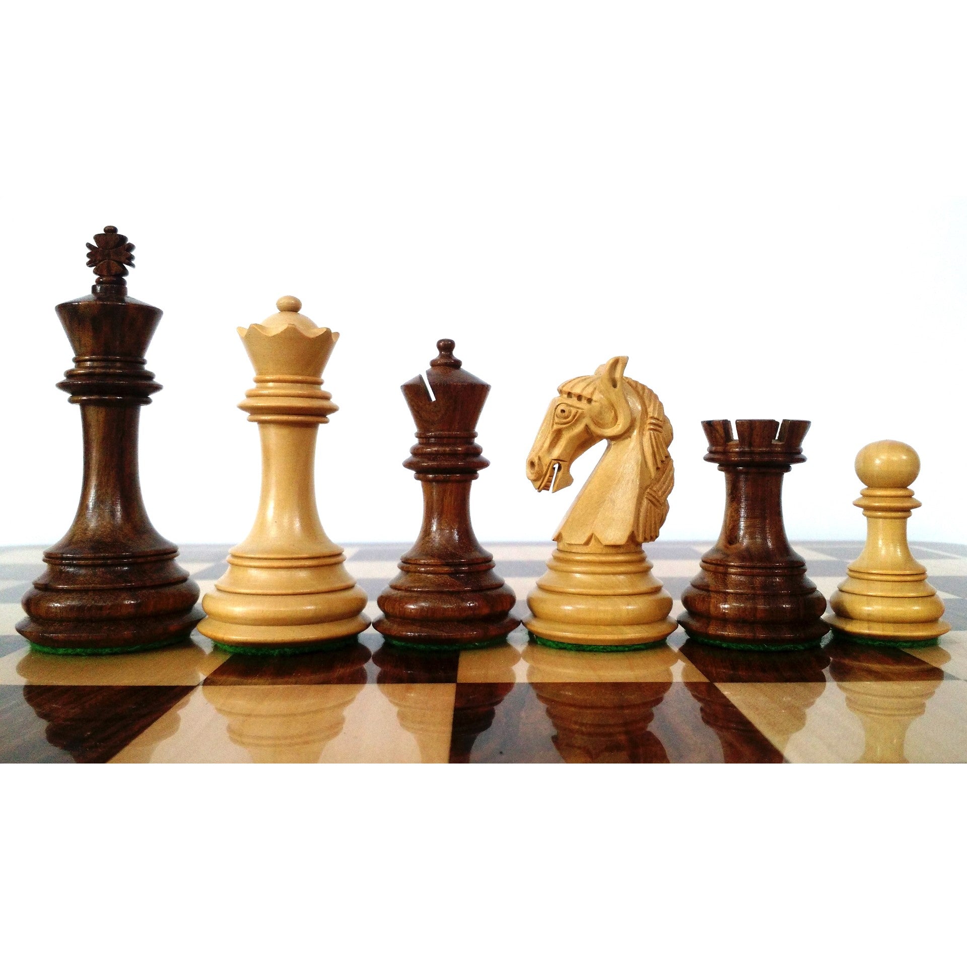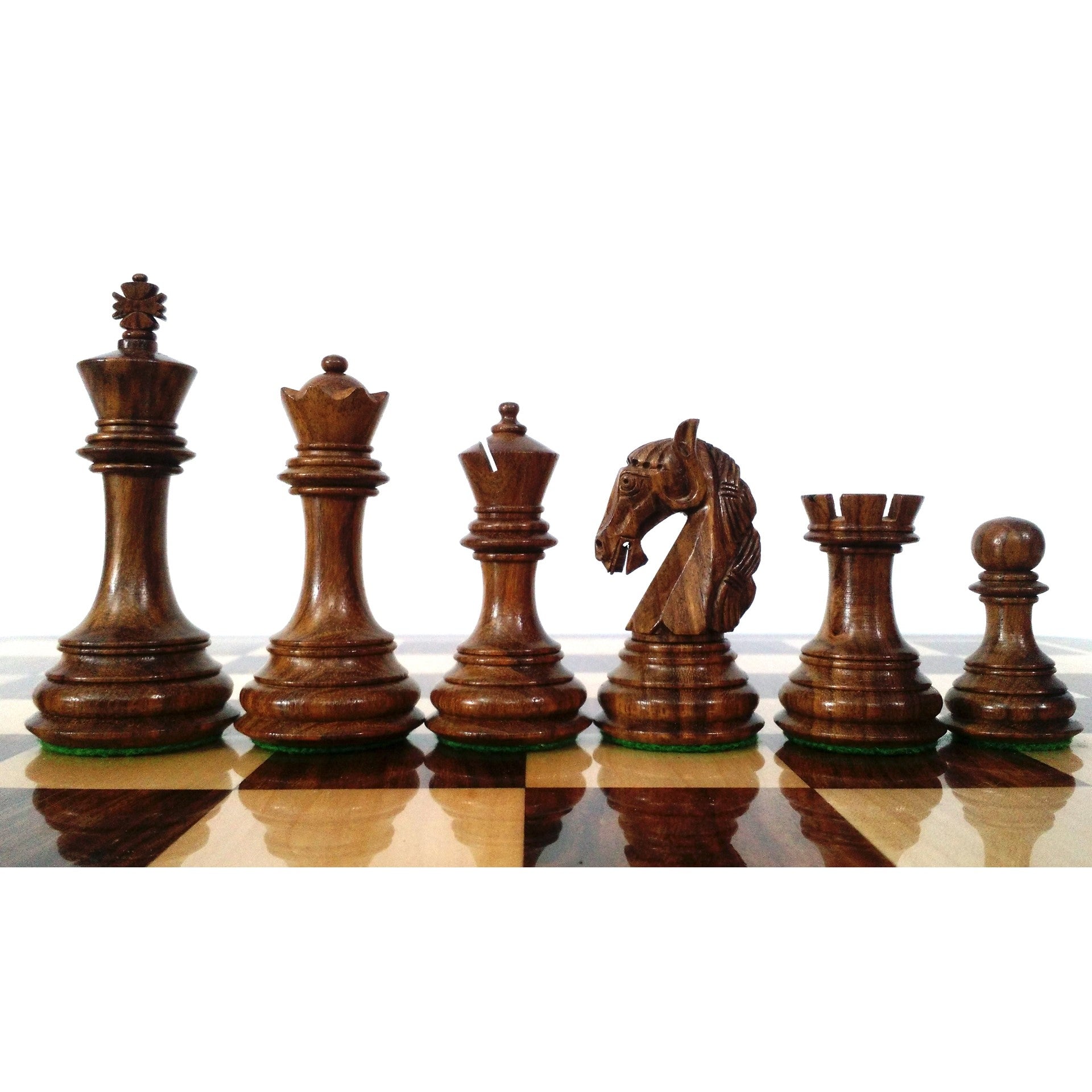 Slightly Imperfect 3.9" Unique Old Columbian Weighted Chess Set- Chess Pieces Only - Golden Rosewood- 4 Queens