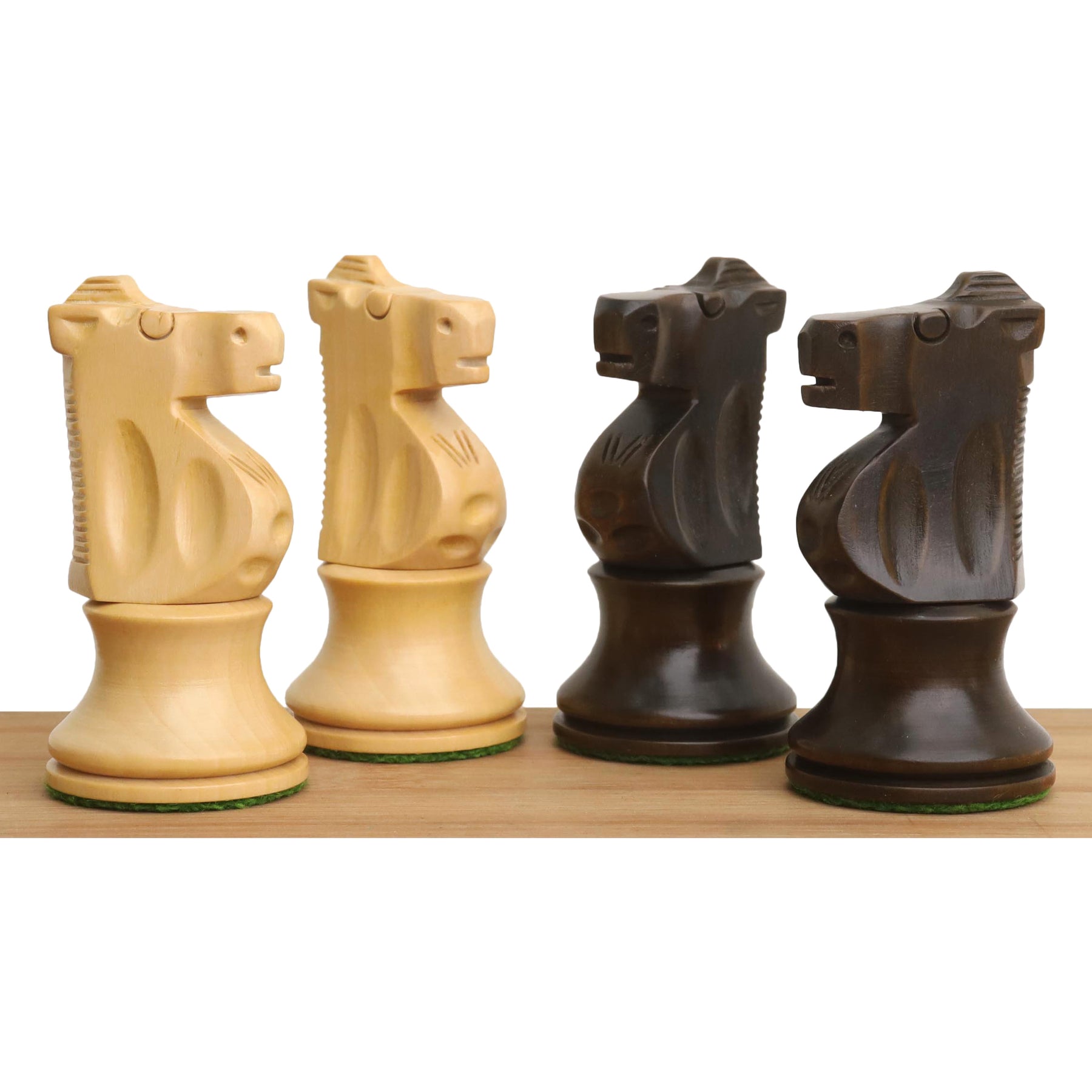 Slightly Imperfect Improved French Lardy Chess Set- Chess Pieces Only - Walnut Stained boxwood - 3.9" King