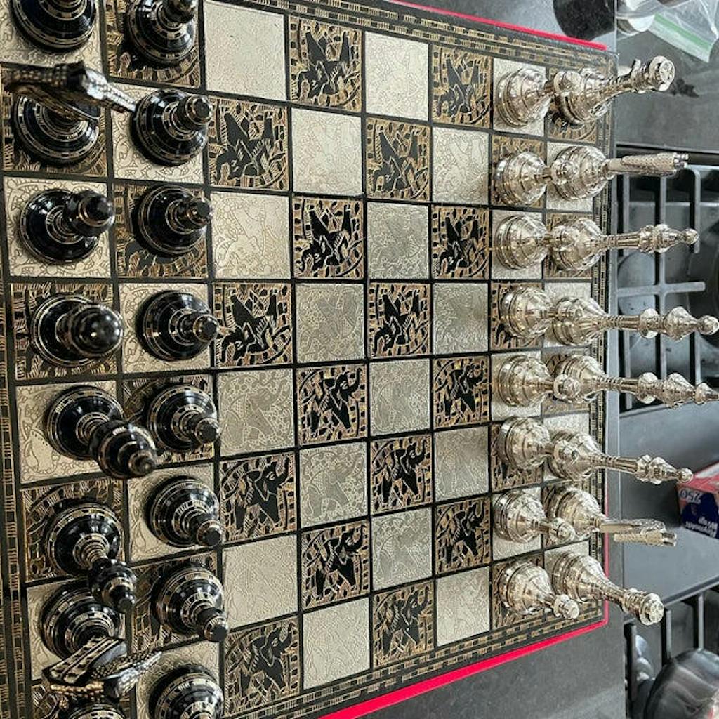 Soviet Inspired Brass Metal Luxury Chess Pieces & Board Set- 14" - Unique Art