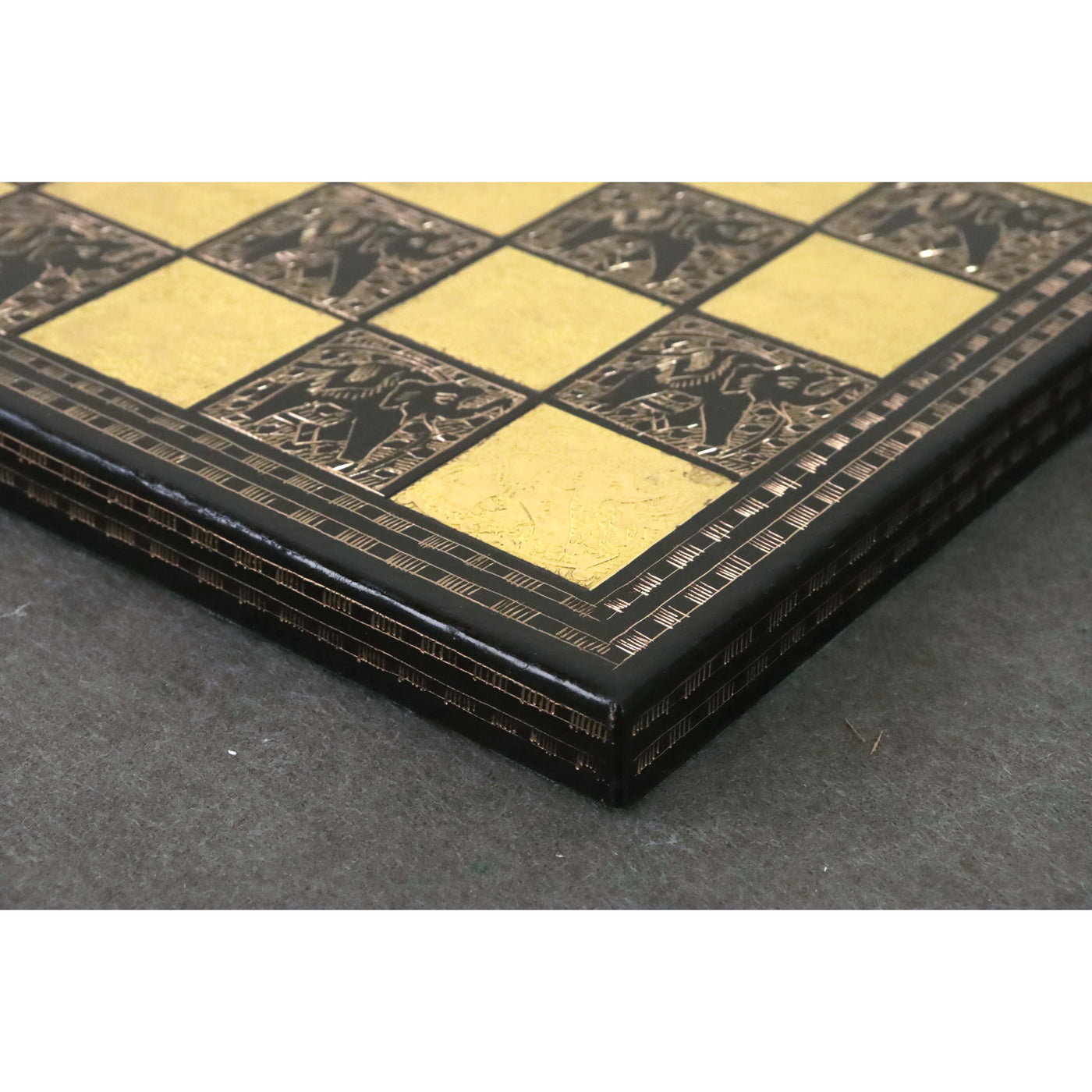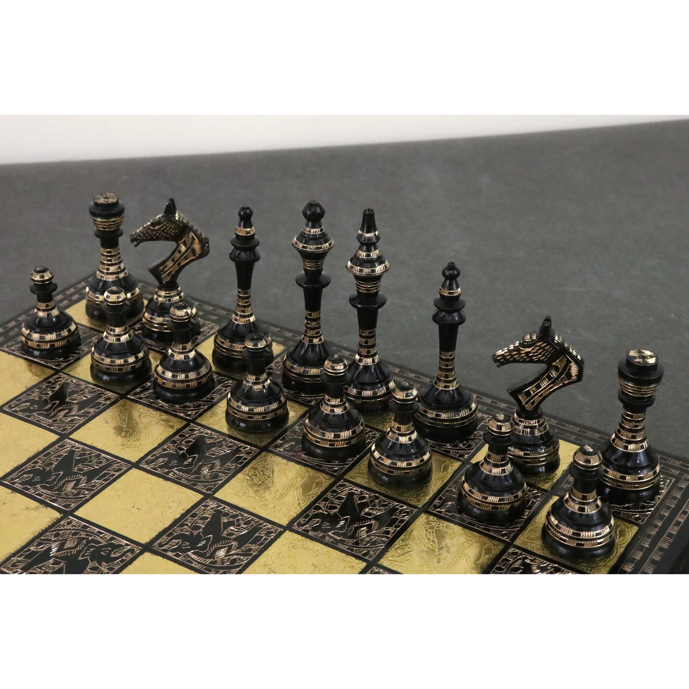 Soviet Inspired Brass Metal Luxury Chess Pieces & Board Set- 14" - Black & Gold - Unique Art
