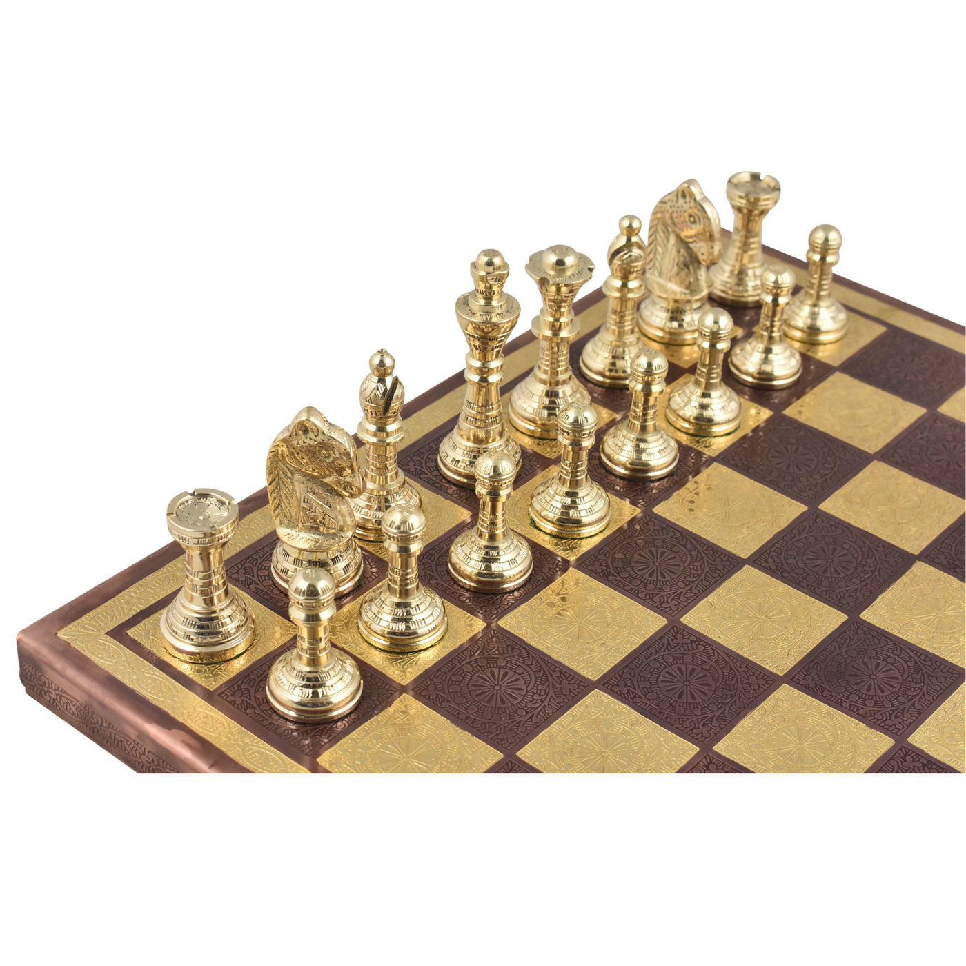 Staunton Inspired Brass Metal Luxury Chess Pieces & Board Set - 12" -Copper & Gold- Unique Art Work